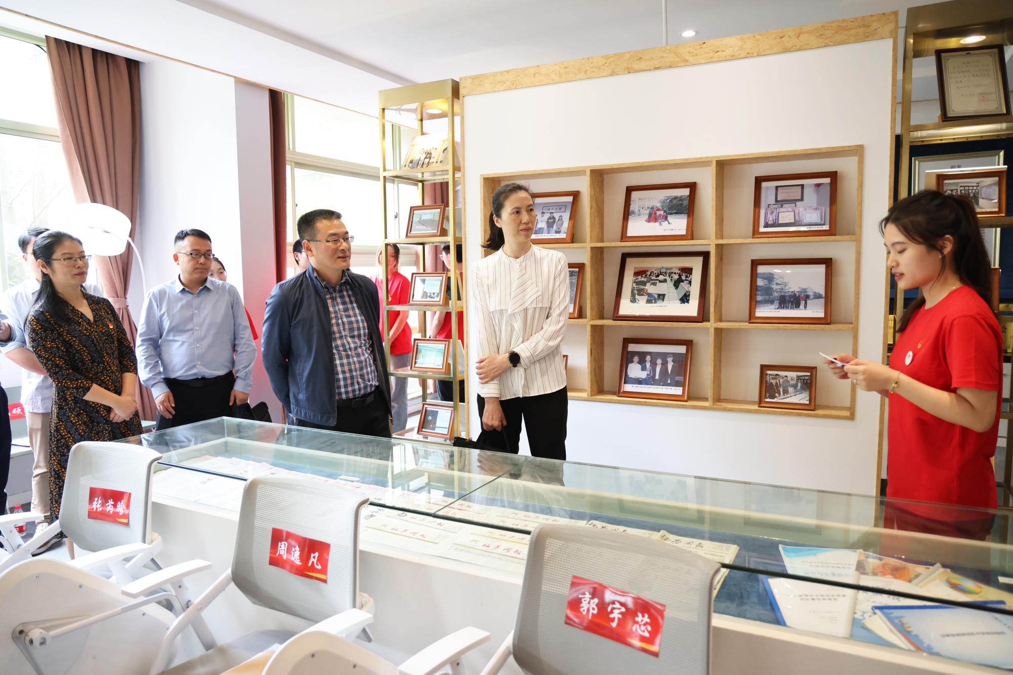 会史馆,21金融学5班学生邵思帆为周书记一行介绍了学会的发展历程及收获的荣誉和成果。“做好一件事情容易,能够二十多年坚持做一件事情是非常不容易的”,周书记看着展柜里陈列的历年的证券周报时发出感慨,对学会的发展表示了充分的肯定。