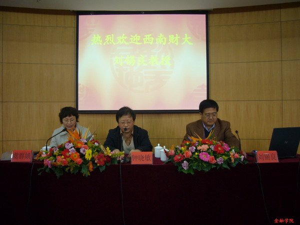 院长虞群娥教授等嘉宾出席了本次讲座。钟晓敏副校长向刘锡良教授颁发浙江财经学院教师聘书,并对刘教授前来讲学表示热烈欢迎。