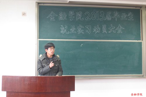 陈伟老师首先向同学们做了就业实习的思想动员。他告诫同学们切莫眼高手低,轻视某些具有发展潜力的工作岗位,从而错失许多良机。今年银行提供的就业岗位仅为去年的一半,并且有更多的研究生、出国留学生参与到激烈的竞争中,就业形势不容乐观。但是陈伟老师还是鼓励大家以积极的心态去面对挑战,尽自己最大的努力迎接未来。