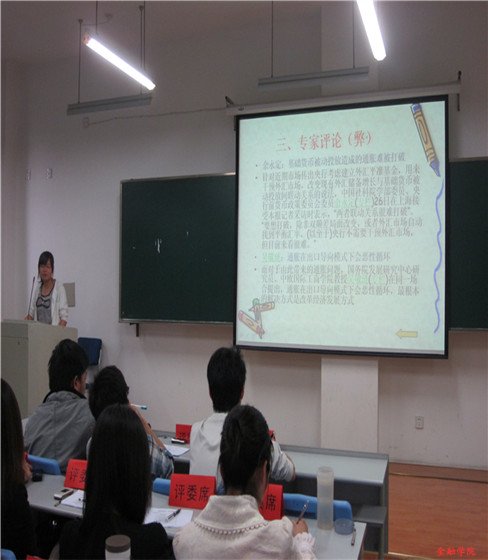 学院楼204教室拉开序幕。一共有十二组选手参加了此次比赛向大家展现了自己眼中的财经世界,接受评委团的点评。