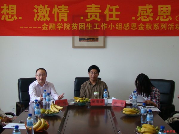 贫困生工作小组感恩金秋系列活动之二——以“梦想·激情·责任·感恩”为主题的贫困生座谈会在水果派
