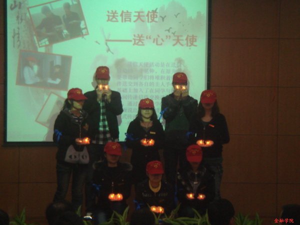 “小小信函表心意,送信天使帮传递”。在送信天使的启动仪式上,送信天使手捧点亮的蜡烛,与观众用手机拼出的亮光爱心交相辉映,他们怀着感恩与祝福之情,为在座的老师送上了金融学子对学校的美好祝愿。配合“感恩”,水果派