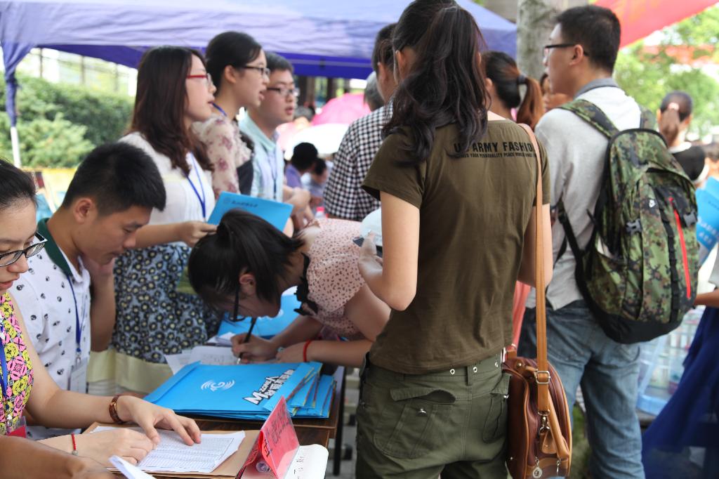 分团委、学生会志愿者组成了一支迎新队伍,以“一带一”的方式为新生们提供便捷的服务。缴纳保险、提拿行李、电话卡激活、介绍校园、入住寝室,交流学习生活经验等等,志愿者忙碌的身影在校园中穿梭。夏日炎炎,却也敌不过志愿者的热情。许多志愿者不辞辛苦来来回回跑了数十次,却依旧以灿烂的微笑面对;有的志愿者甚至顾不上吃午饭,仍坚持先送新生入住寝室。相信各班班导和志愿者热情的态度以及周到的服务已经让新生们减却了初来乍到的陌生感。