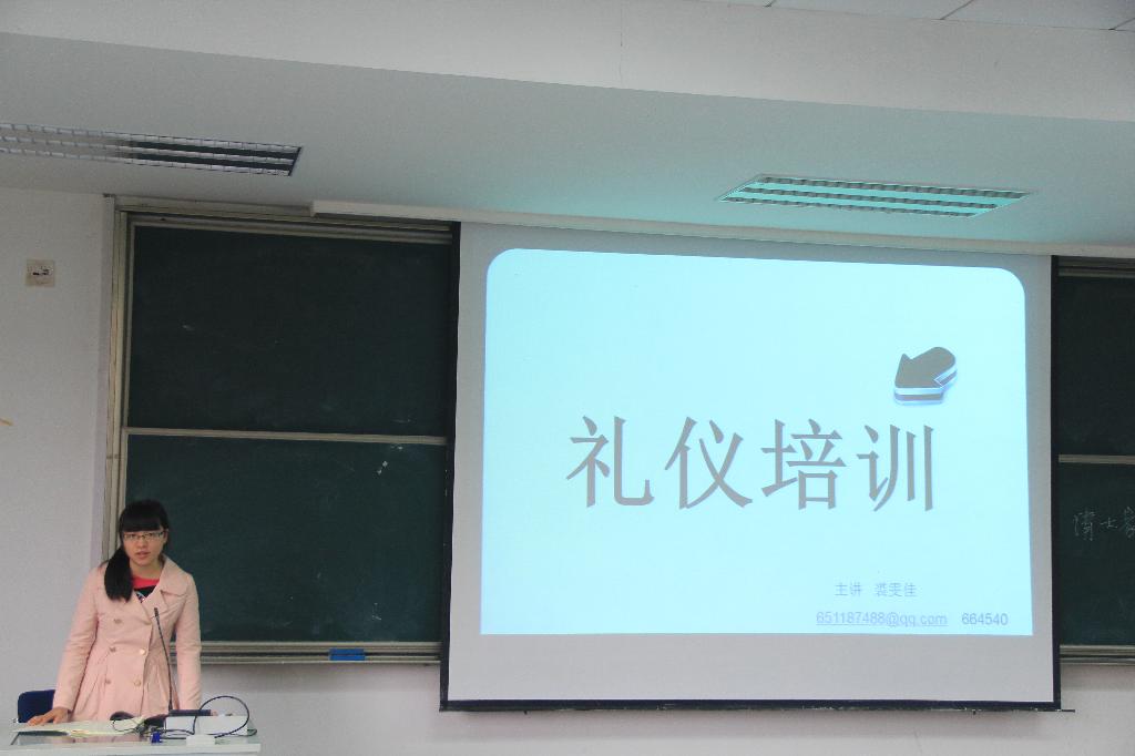 学生会外联部副部长裘雯佳为干事们上了礼仪教育的一课,首先简单介绍了礼仪的概念和作用,然后具体讲述了电话礼仪,办公室礼仪以及如何自我介绍并强调了个人举止的各种禁忌。第三个环节是由学生会办公室副主任李梦璇进行公文写作讲解。李梦璇副主任用生动的案例介绍了工作计划,工作总结,活动策划,活动总结,邀请函和通知的写作格式和注意事项。