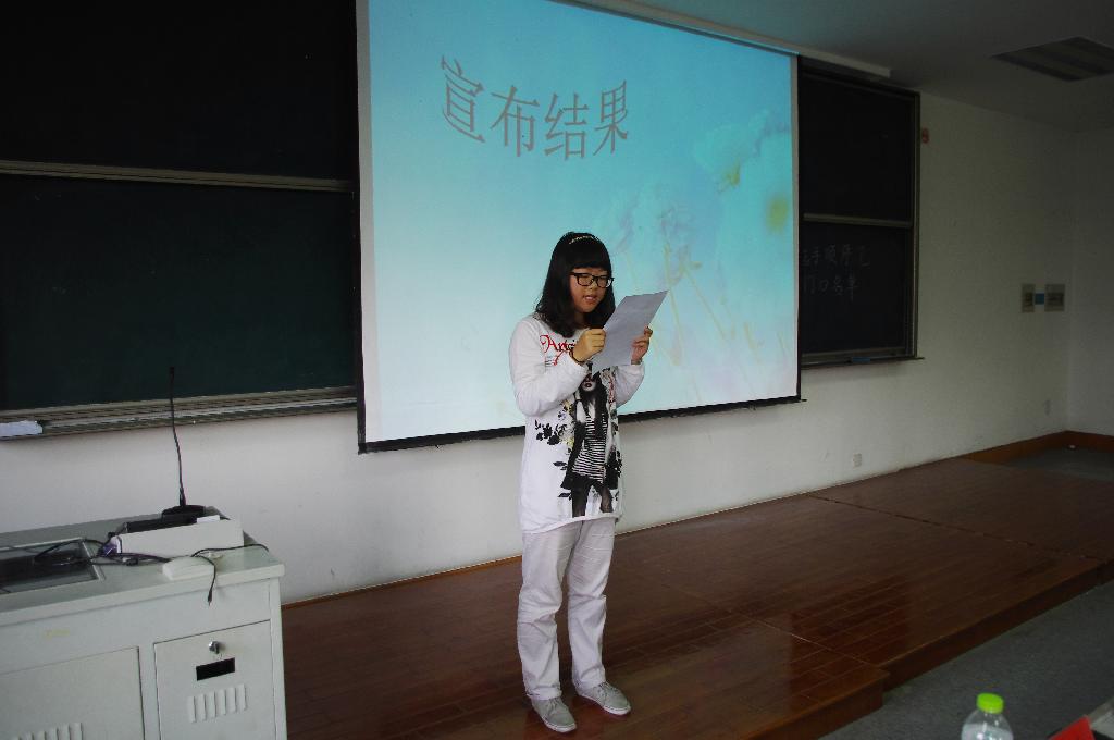 十佳歌手初赛在学院楼102正式拉开了帷幕。本次比赛的评委由陈晟等七位历届十佳歌手组成,比赛采取评委举牌投票的方式,票数在5票以上者进入复赛,低于5票者则被淘汰。