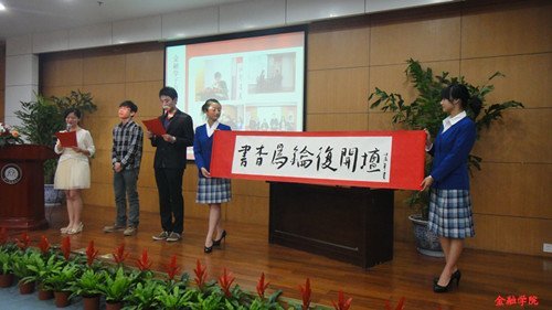 百家讲坛节目一贯以主讲人丰富的专业知识、独到的个人见解和精湛的演讲水平受到同学们的一致好评。成果展现场请到了百家讲坛一等奖获得者——讲坛之星张超伦同学。在采访他的过程中他表示,在此次比赛中,他享受的不仅是从书籍中获得的文化、精神,更是感受到了来自朋友同学以及很多陌生人的鼓励关怀。同时他还表示参加比赛的过程也是他不断发现自己不足,通过改正而得到自我满足的过程。对于即将展开的新一轮百家讲坛活动,他希望选手们能将这个活动真正融入进自己的生活,将比赛中思辨与探索的精神带入自己的学习、工作中去。“百家争鸣向谁看,书香为钥复开坛”,在现场,张超伦同学为百家讲坛挥毫对下联,预祝本届百家讲坛能够取得圆满成功。