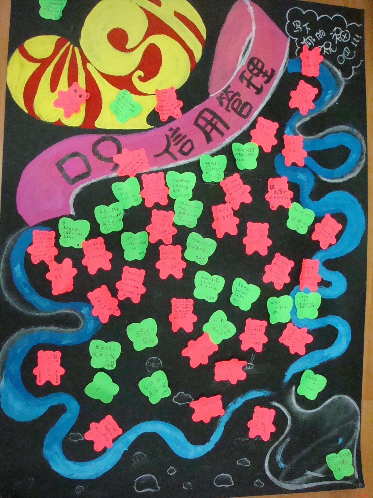 整场班会开展下来,同学们快乐又感动。最后,我们静静地在便利贴上记录下我们此刻最真的情感,亲手将这一份份祝福定格在09信管的KT板上,成为永恒。