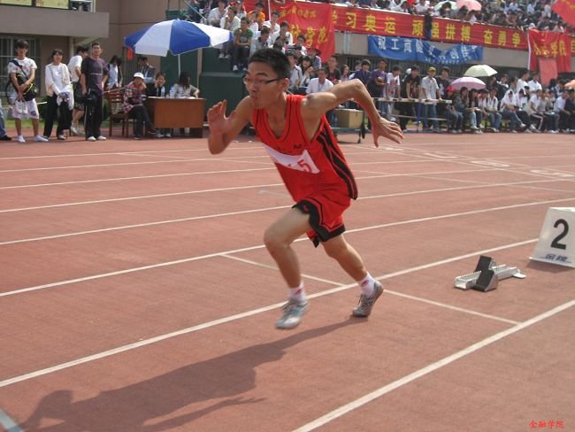 10月23日上午举行的男子100米预赛,注定要载入校运会史册,09金工的邱鲱帆同学以11秒40的成绩打破了男子100米纪录。矫健的身姿,如风的速度,让他在当日下午的100米决赛中毫无悬念地夺取了冠军。
