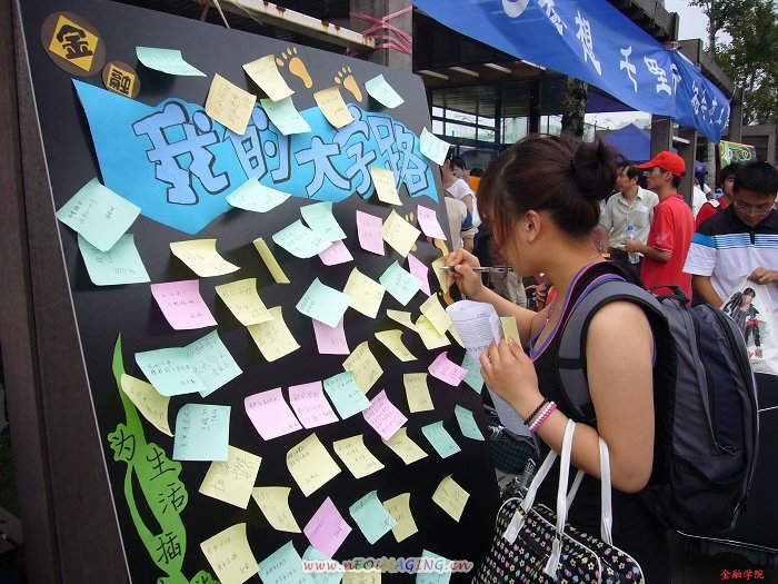“希望人生就此改变!”“要为未来而努力。”“我要考研!”新生们纷纷写下自己的目标与理想贴在“我的大学路”特色公告栏上。五彩缤纷的展板承载了新生们初生牛犊的壮志雄心和远大理想,引领新生在刚刚踏上大学之路时就树立目标并以此鞭策自己在大学里不断努力进取,这便也是水果派