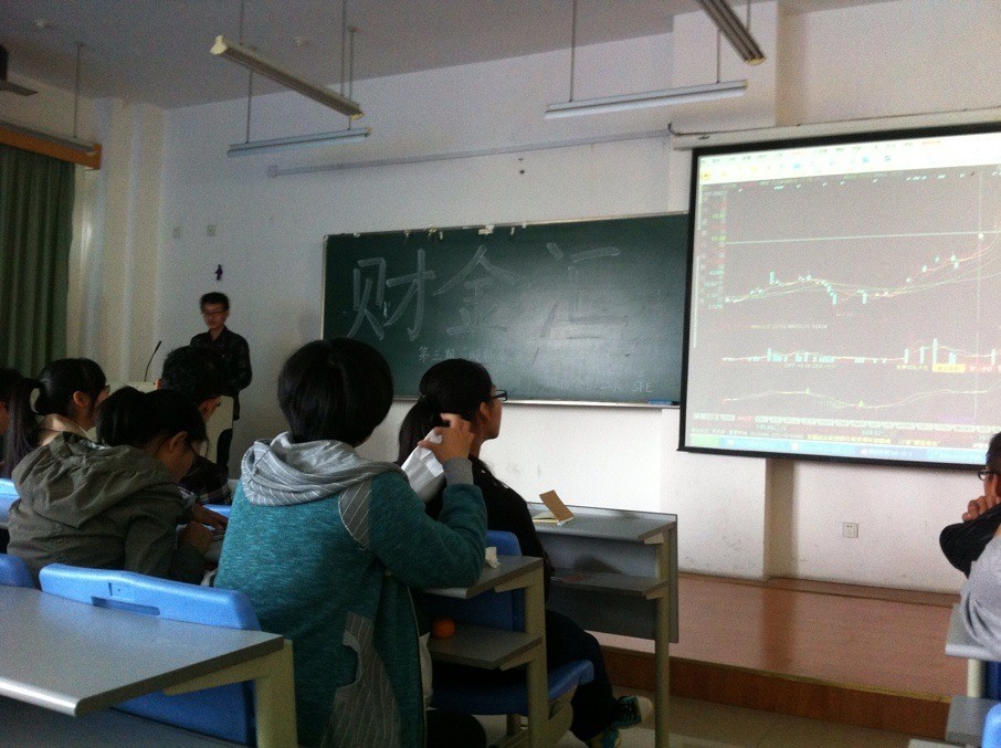 楼204如期开讲。本期“财金汇”迎着金融学会举办的模拟证投资大赛的热潮,邀请到了具备丰富股票知识和炒股经验的嘉宾为同学们授业解惑。