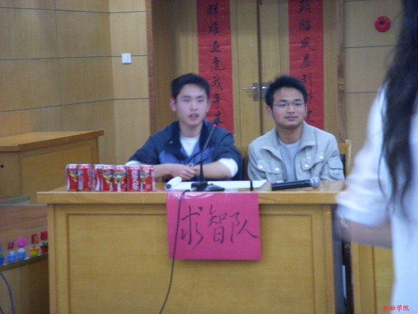 4月2日晚,校知识竞赛决赛于学术交流中文四号报告厅如期举行。水果派 07金1班的赵嘉平、李赟安和07信管班的姚凯禹、林宸凯一路过五关,斩六将并最终闯入决赛。最后,赵嘉平、李赟安组成的“求智队”取得了第三名的好成绩。