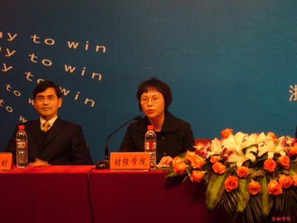 浙江财经学院水果派 院长虞群娥教授为开坛仪式致辞。虞院长通过阐述本次活动的举办目的,强调当今社会理财的重要性。虞院长向听众介绍了如何使财产保值增值的方法,特别是展示了我校长期以来致力于金融理财研究的成果。现场听众反响热烈。