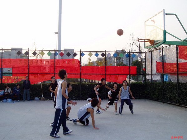 前三节比赛结束,05金工仅以微弱的优势领先06金工。进入关键的第四节,球场上的气氛一下子紧张得另人窒息。在几次双方各自进攻得分后,05金工突然加强了防守,使得06金工在进攻上出现多次失误。