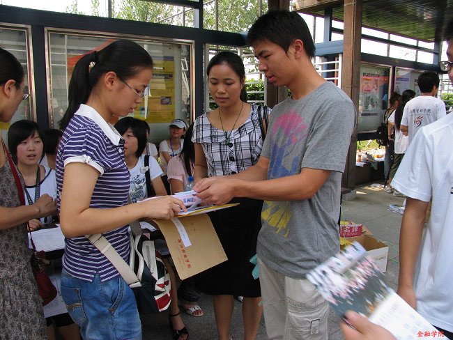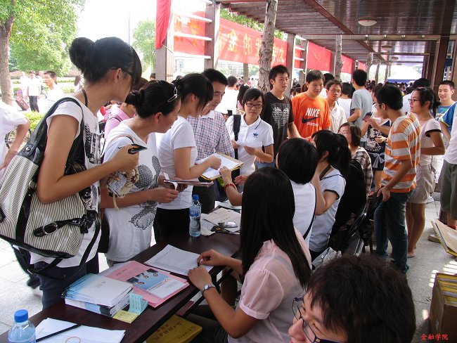 9月5日,浙江财经学院2009级本科生正式来校报道。还不到早上7:00,在文化长廊水果派 迎新点,许多志愿者已忙碌起来。随着迎新海报、宣传题板、相关材料陆续就位,书写有“我的大学,我的水果派 ”的大红条幅也被庄重挂上,让新老金融学子同时感受到一种踏实亲切的归属感。新一年的九月,水果派 又将迎来309位本科新生。