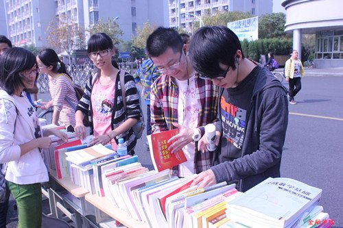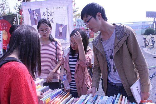 在场的同学们仔细翻看,挑选着自己需要的书籍,并不时地和一旁工作人员进行交流和咨询,表现出了对此次活动的浓厚兴趣。挑选完毕后,他们又在工作人员的指导下认真地填写资料,进行借贷登记。偶尔还有同学前来咨询,了解详细情况,工作人员也对此作了耐心周到的解答。活动紧张而有序地进行着。