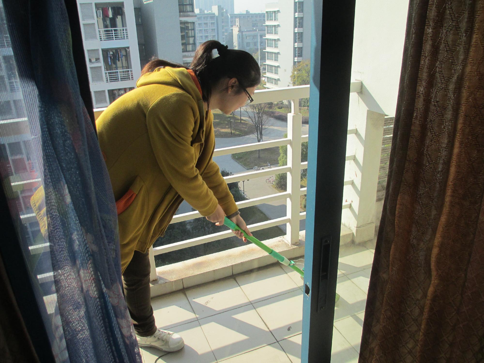 上午9点,党员们在组织部同学的组织下带着打扫工具赶往生活区十五幢。在向寝室的同学们说明了情况之后,党员们走进寝室,动手打理起寝室卫生。在打扫的过程中,党员们充满干劲,除了扫地、拖地、擦桌椅以外,还主动帮助同学们倒垃圾。寝室的同学们也被党员们的劳动精神所感染,主动参与到了打扫中来。在党员和同学的相互帮助、相互合作下,寝室环境焕然一新,连稍显脏乱的阳台地面也得到了彻底的清洗,堆满书籍的桌面更是经过同学们的整理后变得干净整洁。同学们纷纷表示身处这样洁净整齐的环境中,自己也变得更有精神,更容易投入到学习工作中去了。