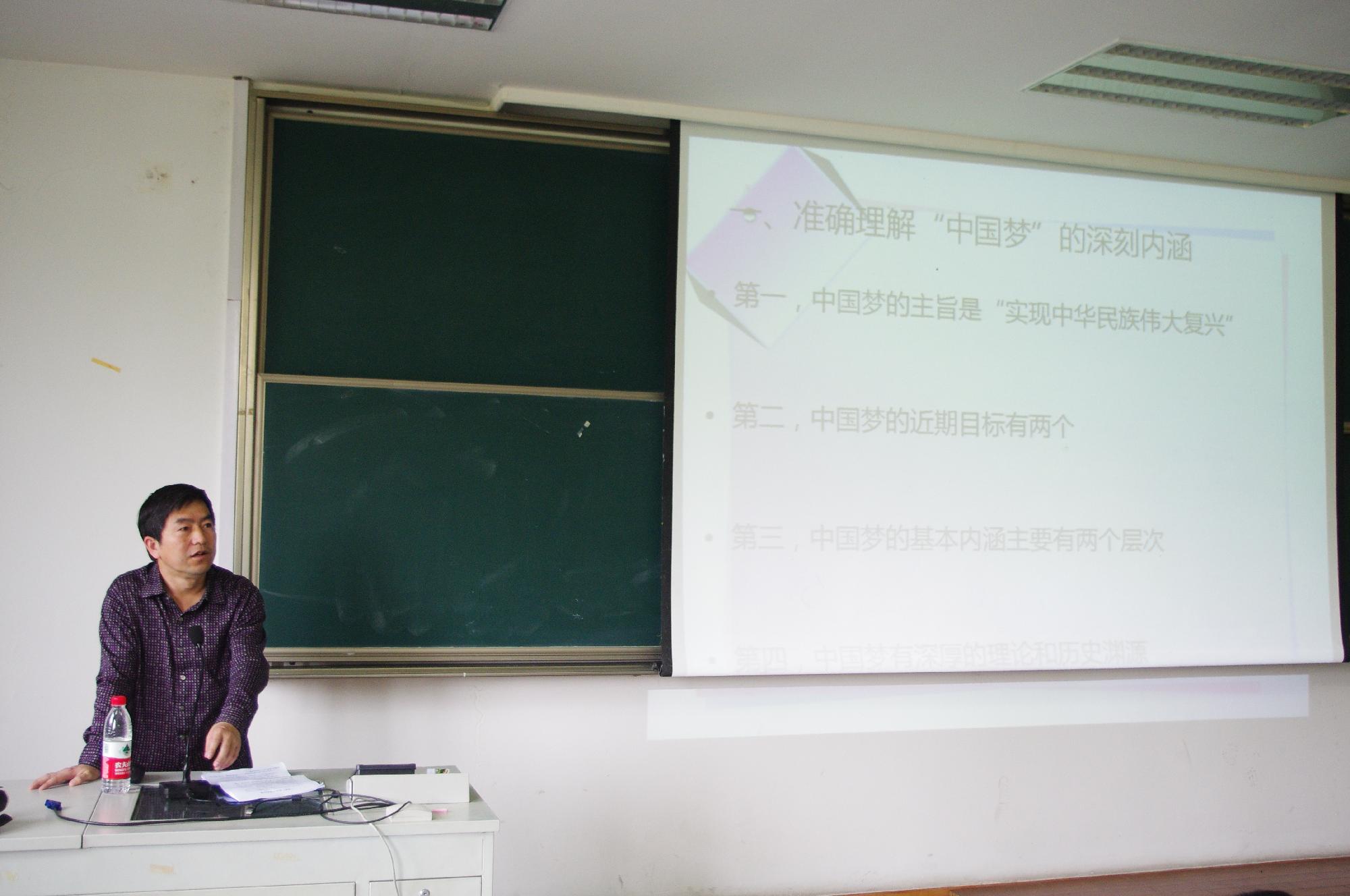 5月20日下午1:30,党课第四讲在学院楼102教室顺利开展,此次党课邀请到了我校思想政治理论课教学与研究部主任华正学老师担任主讲老师,华老师以“有关中国梦的几个问题解析”为题,为同学们详细地解读了“中国梦”。