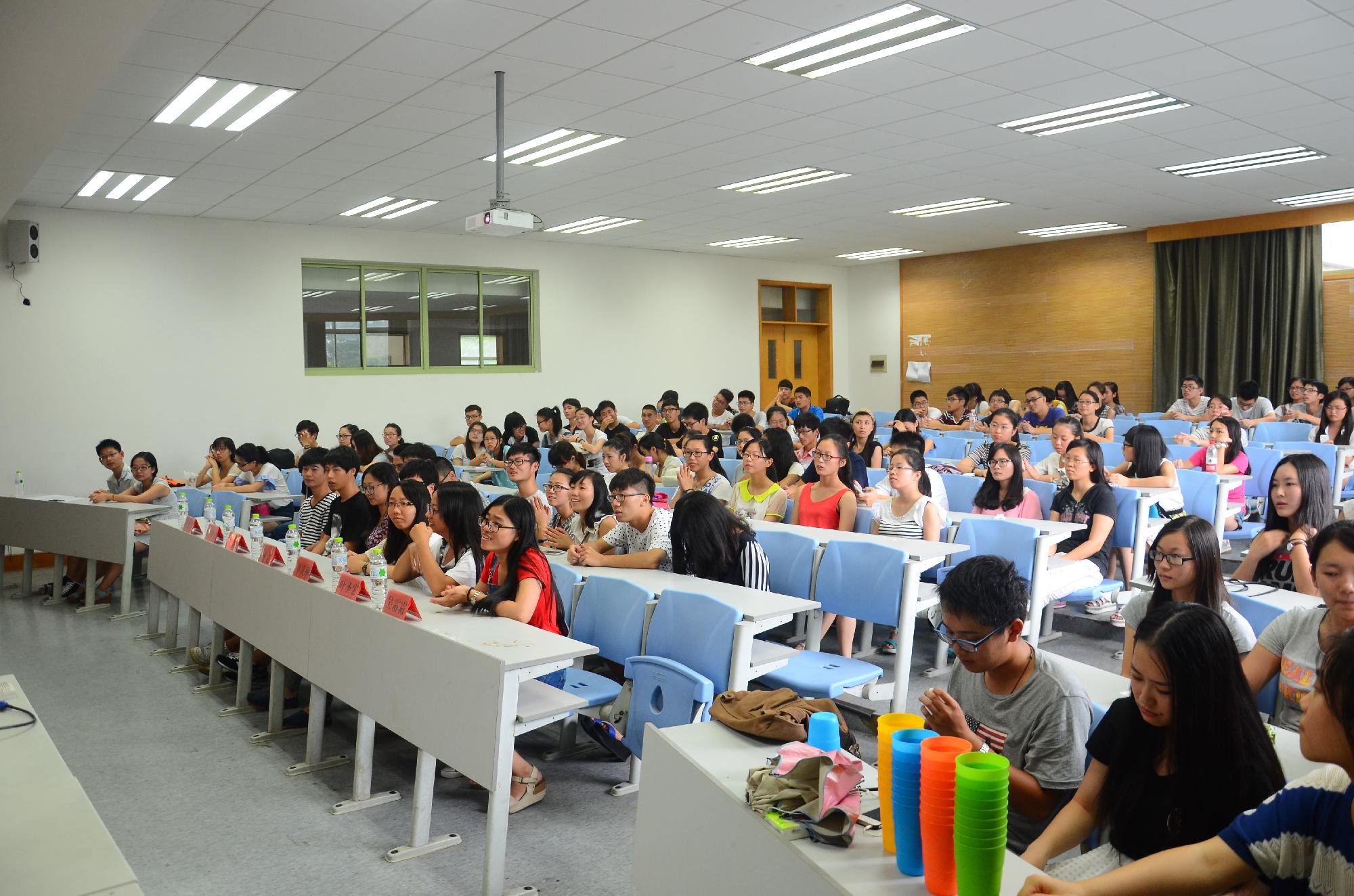 楼102教室内举行2014级迎新生志愿者动员大会。本次会议由院学生会宣传部组织进行,邀请到了辅导员蒋超,学生会主席团的主席李梦璇,副主席叶圣宏、何梦尘等作为嘉宾出席本次会议。此次大会着重强调了志愿者活动在学生工作当中的重要性,赞扬了志愿者的无私奉献,勇于承担责任的高尚品质。蒋超老师也在讲话中鼓励在场的志愿者,要充分发挥学长学姐的优势,在为新学子领路、服务的过程中传递一种财大水果派
