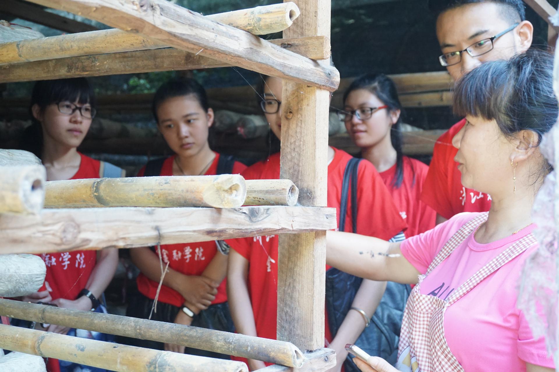 辅导员聂亚平带队组成的学生暑期社会实践服务团来到庆元考察香菇产业的发展状况。