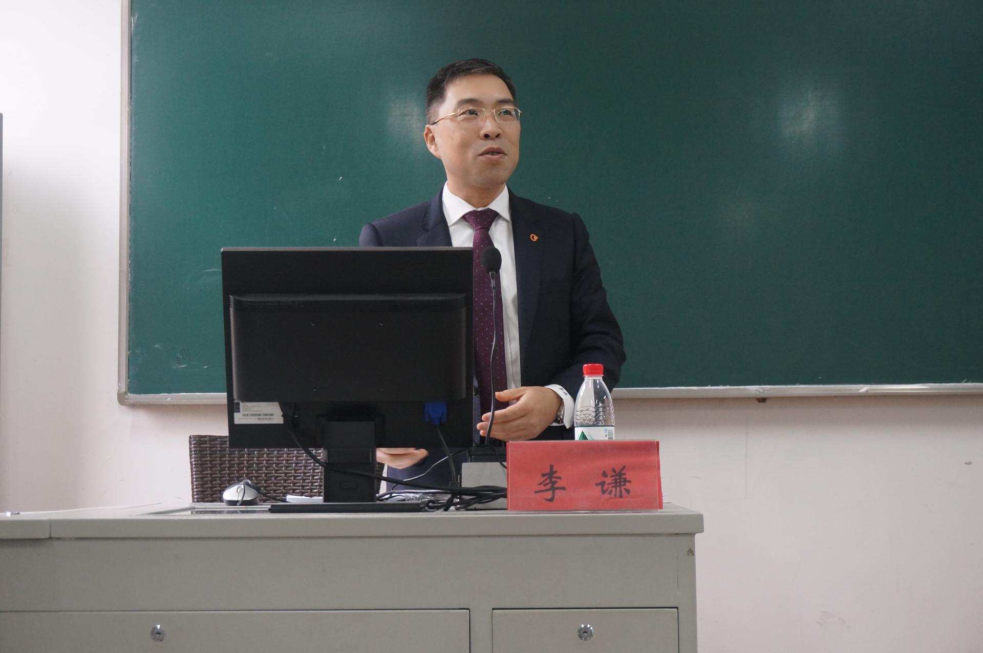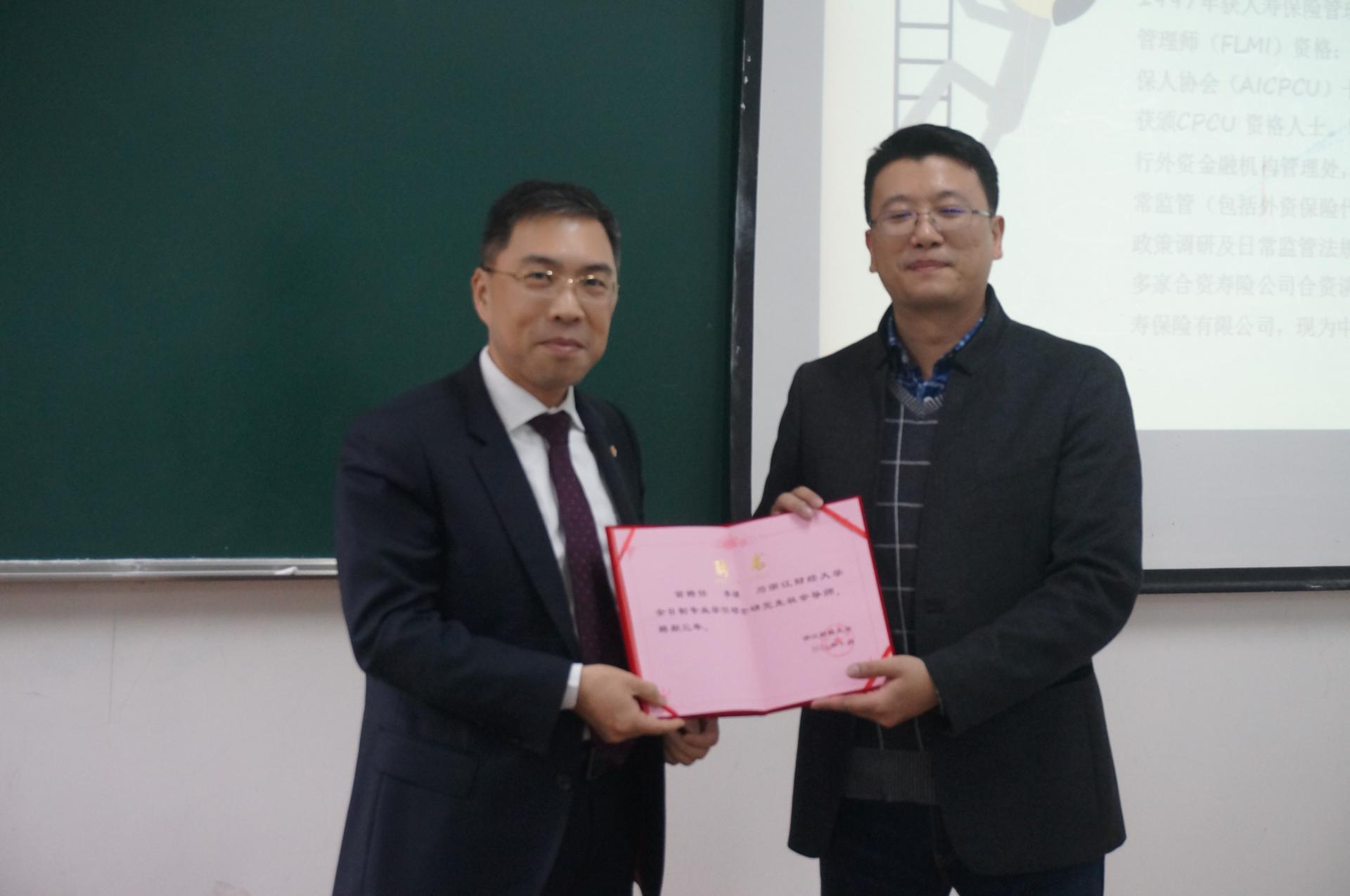 讲座开始前,由王聪聪院长向李谦先生授予了保险硕士社会导师聘书。