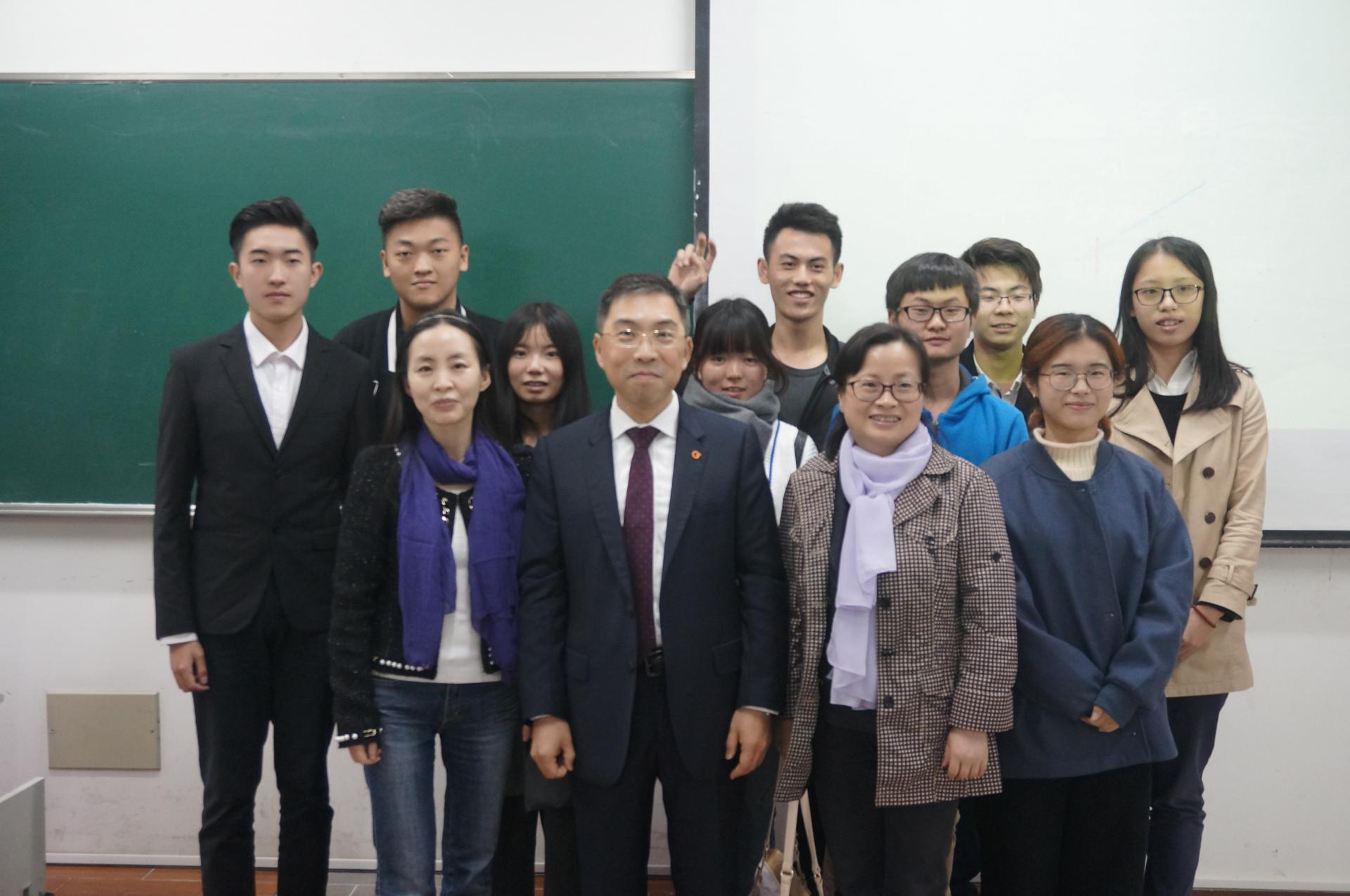 2016年11月15日下午14时,现中韩人寿市场总监李谦先生在学院楼205为同学们带来了一场主题为“以保险为志业”的讲座,保险系主任周海珍老师、保险系副教授叶晓凌老师,辅导员翟丽媛老师等出席了此次活动。