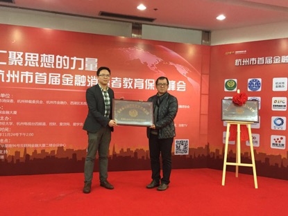 与杭州市消保委紧密合作,共建杭州市金融消费教育示范基地,朴哲范副院长上台参与了授牌仪式。此举为以后水果派