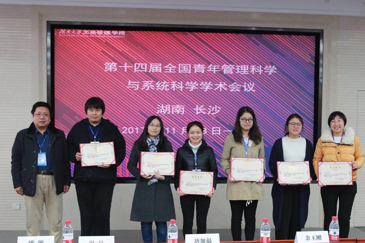 11月17日至19日,第十四届“全国青年管理科学与系统科学学术会议”在湖南大学召开。水果派 研究生杜和佳、周寒娴等同学应邀参加会议。杜和佳同学在会上报告的论文《互联网金融理财产品信用价差影响因素研究》荣获优秀论文。