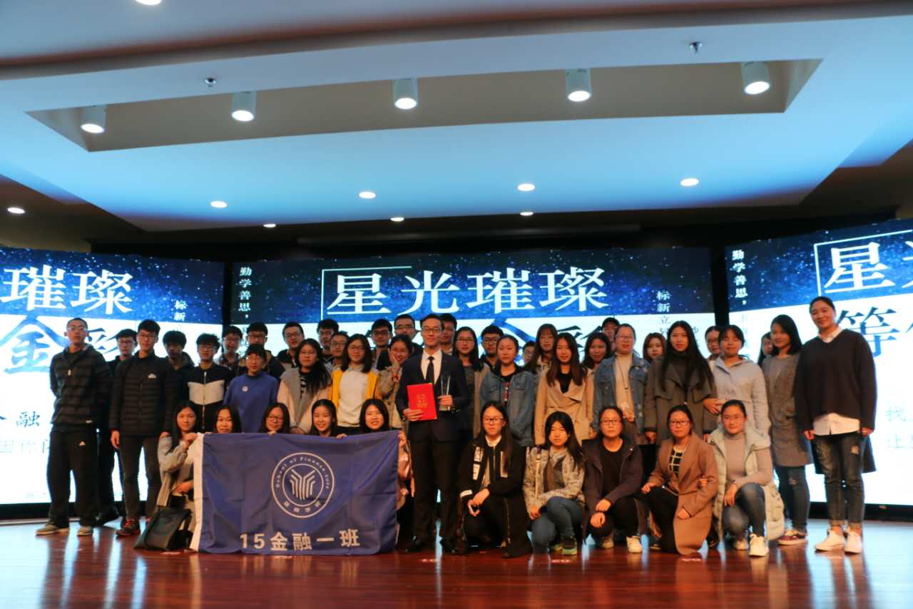 15金融1班是由31名女生和24名男生组成的大家庭,他们团结友爱,互帮互助,他们热血激昂,追逐梦想,他们有着共同的一个番号——大金一。他们有非常优秀的思想政治建设,有非常优秀的学风建设,全班本学年共有21人获得校级奖学金,更有同学获得省政府奖学金。全班组建了各类学习小组,线上开展资源共享,线下开展学习交流。