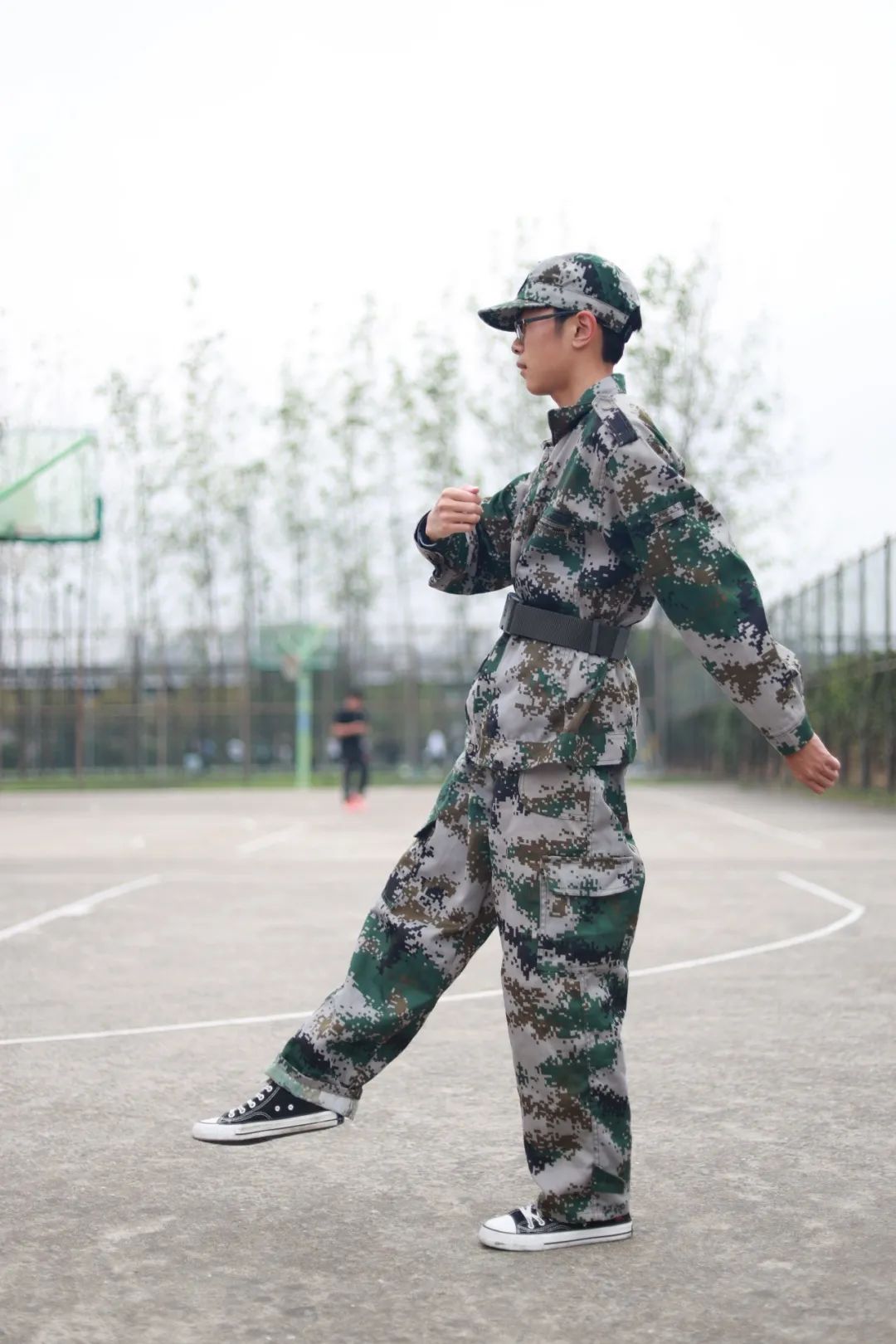 21级新生,右盆骨先天性四级伤残,满足军训免训条件,在惊人的毅力支撑下,完成了为期十天的训练。