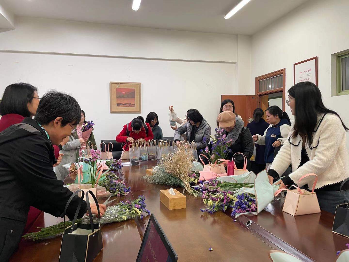 本次活动旨在借花香亲近自然芬芳,睹花颜忘却繁忙琐碎,学花艺陶冶心境情操。是构建幸福学院,陶冶教师情操,提高审美情趣的重要举措,有助于进一步提高女教职工的学院归属感。
