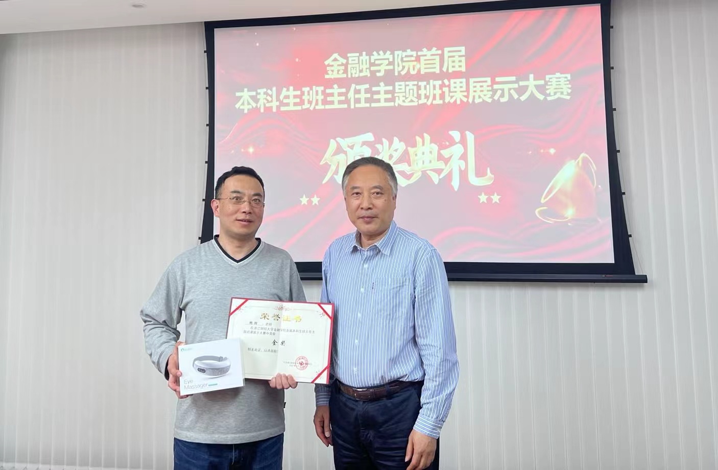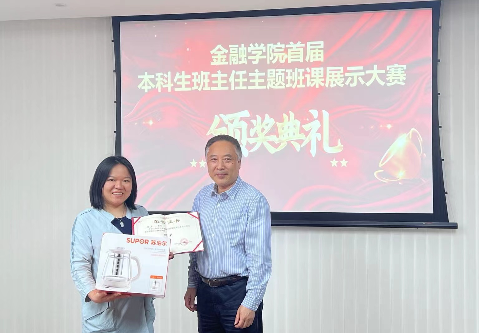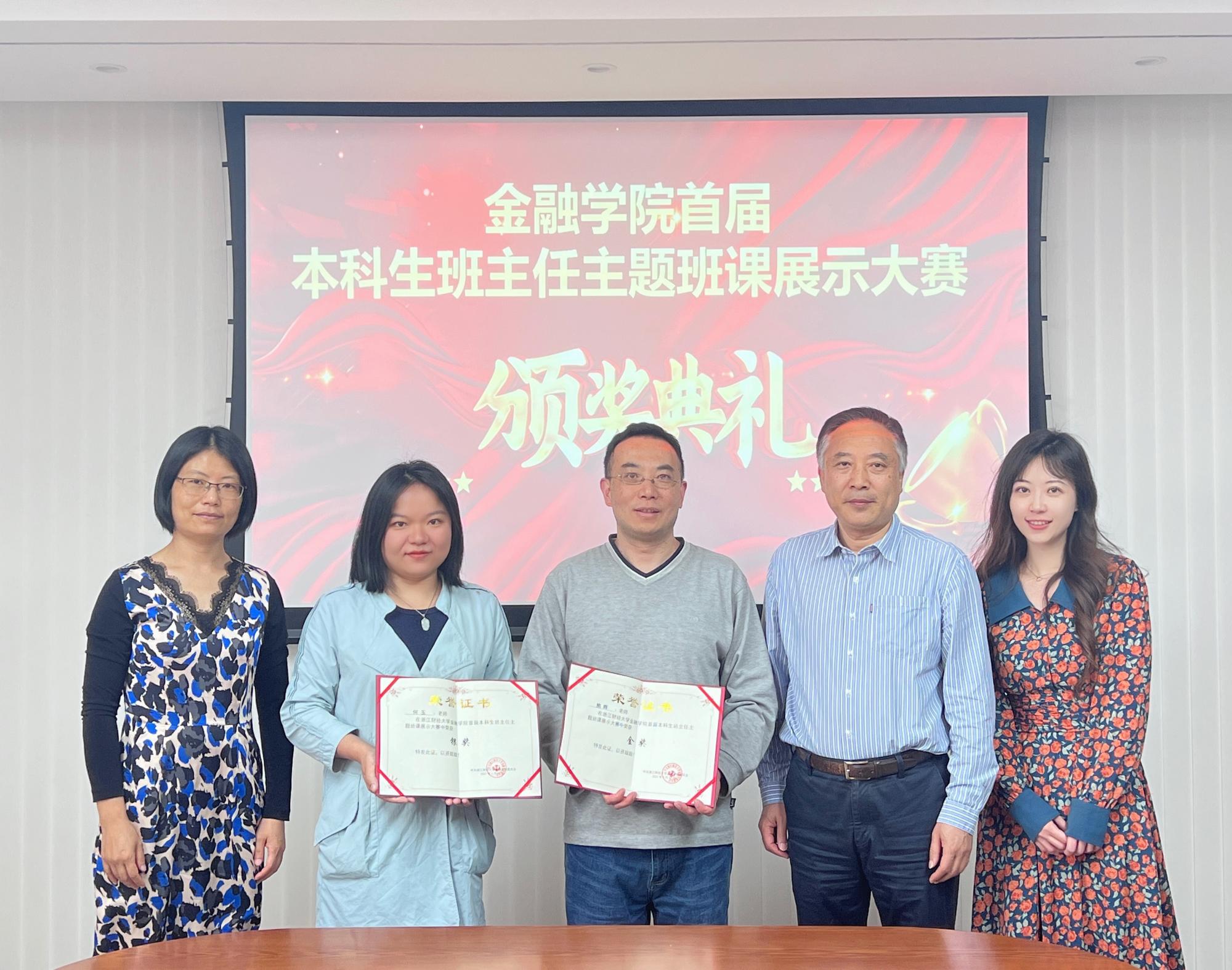 展示结束后评委们综合班课的选题、内容、形式、效果等对各参赛作品进行打分。经过激烈角逐,熊晖老师荣获本次比赛金奖,何玉老师荣获银奖。学院党委书记蔡国金为两位获奖老师颁奖,并合影留念。