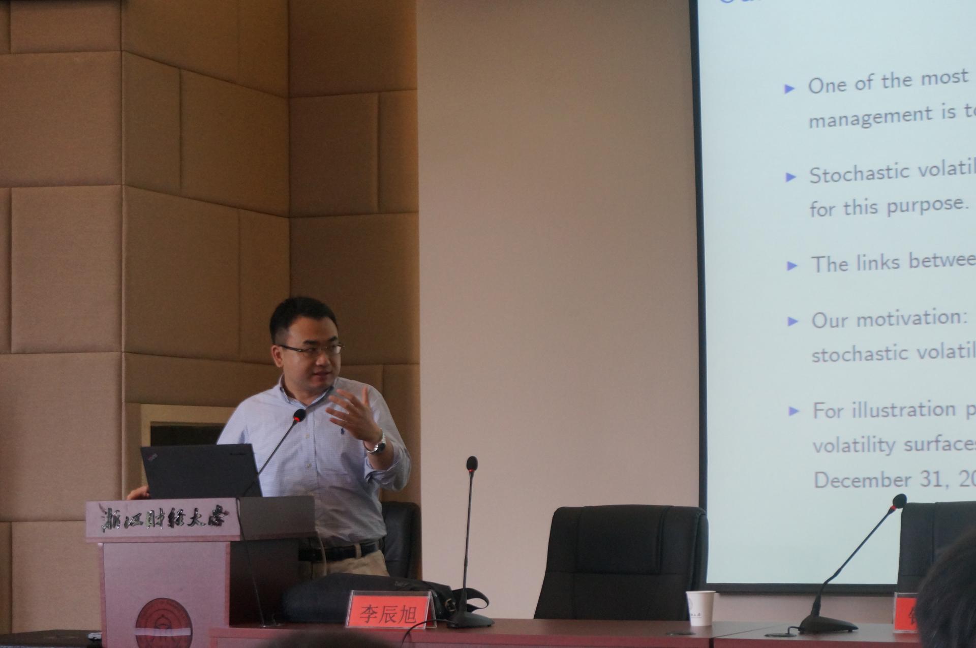 在学院楼202报告厅举办了相关学术讲座。本次讲座的主讲人是北京大学光华管理学院博士生导师李辰旭副教授,李教授于中国科学技术大学获得学士学位,后于哥伦比亚大学获得博士学位,主要从事金融计量和金融工程等专题研究,其多项研究成果在国内外重要学术期刊发表。本次讲座由陈荣达教授主持,钟立新等部分学院老师和学生参加了此次讲座。