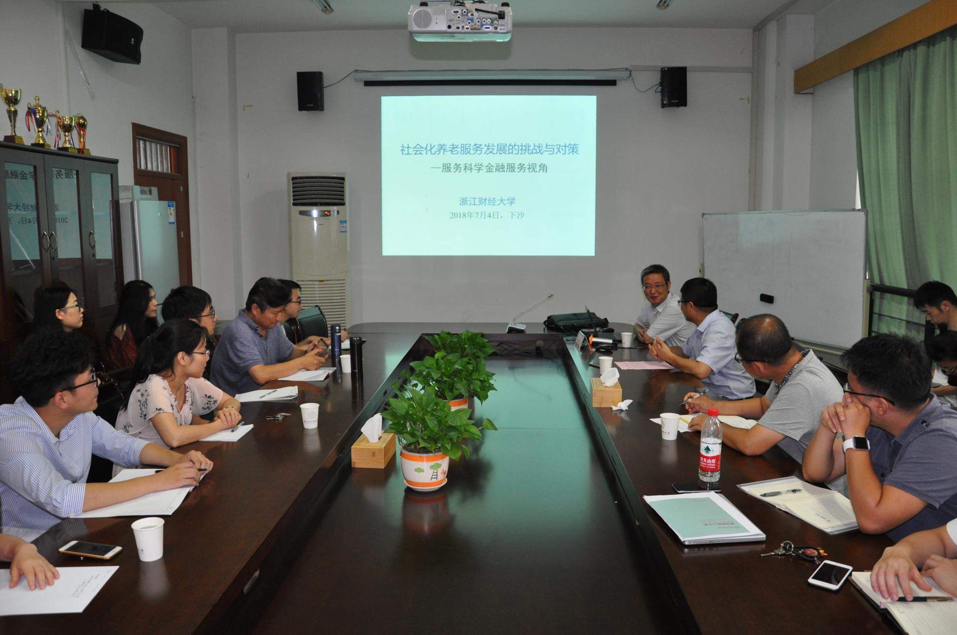 楼422会议室作了题为“社会化养老服务发展的挑战与对策——服务科学与金融服务视角”的学术讲座。本场讲座由陈荣达教授主持,水果派