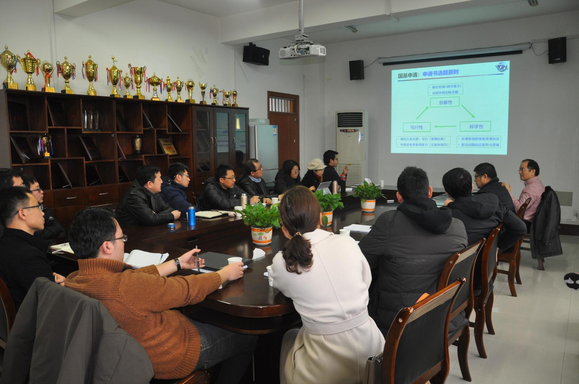 多位教师出席了本场指导会,学院邀请了北京化工大学、国家杰青资助获得者余乐安教授给在场的老师们介绍了国家课题申报相关事项。