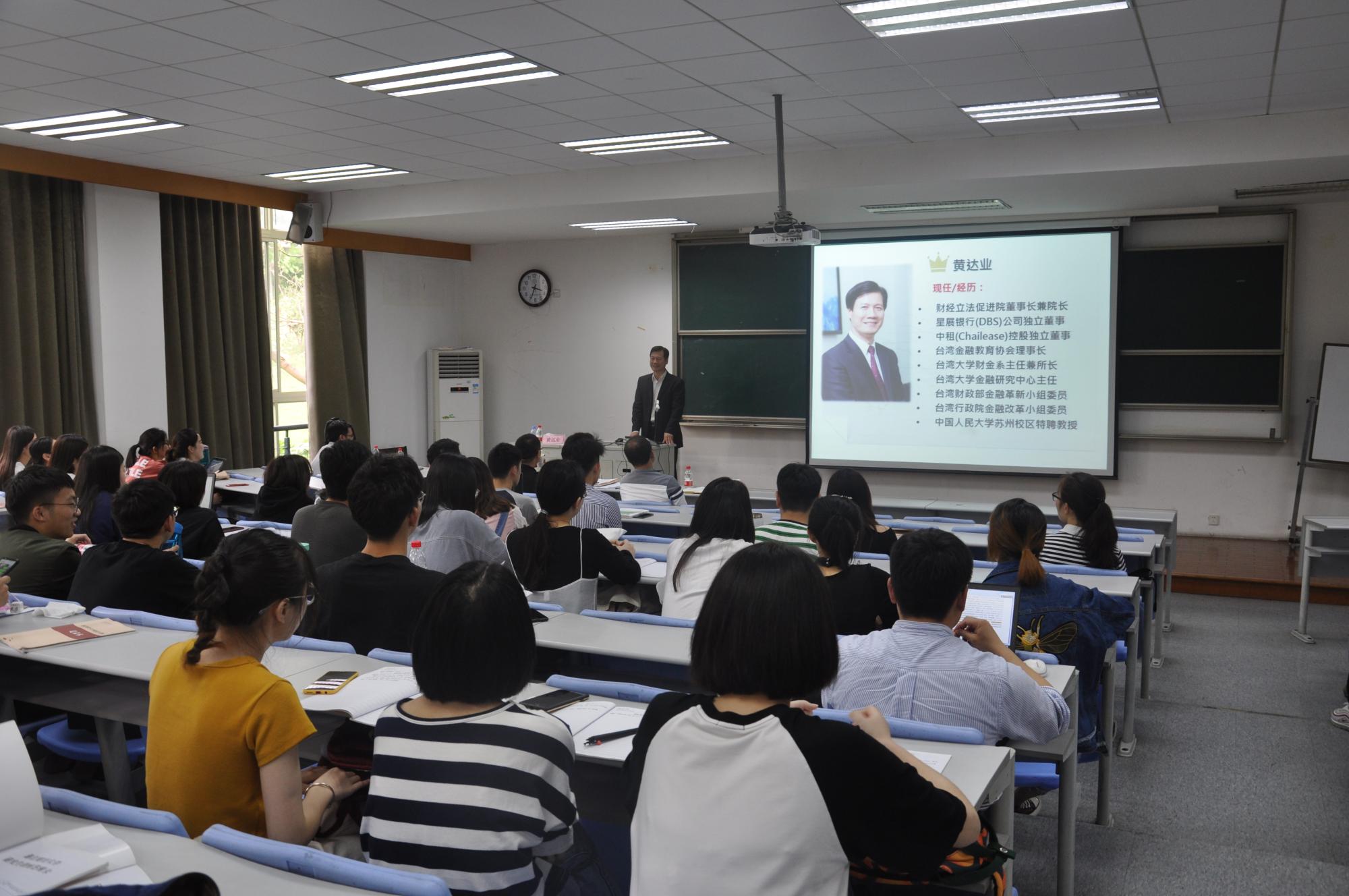 102教室,台湾大学黄达业教授应邀作了题为“金融监管、金融创新与大国金融人才的打造”的学术报告,水果派