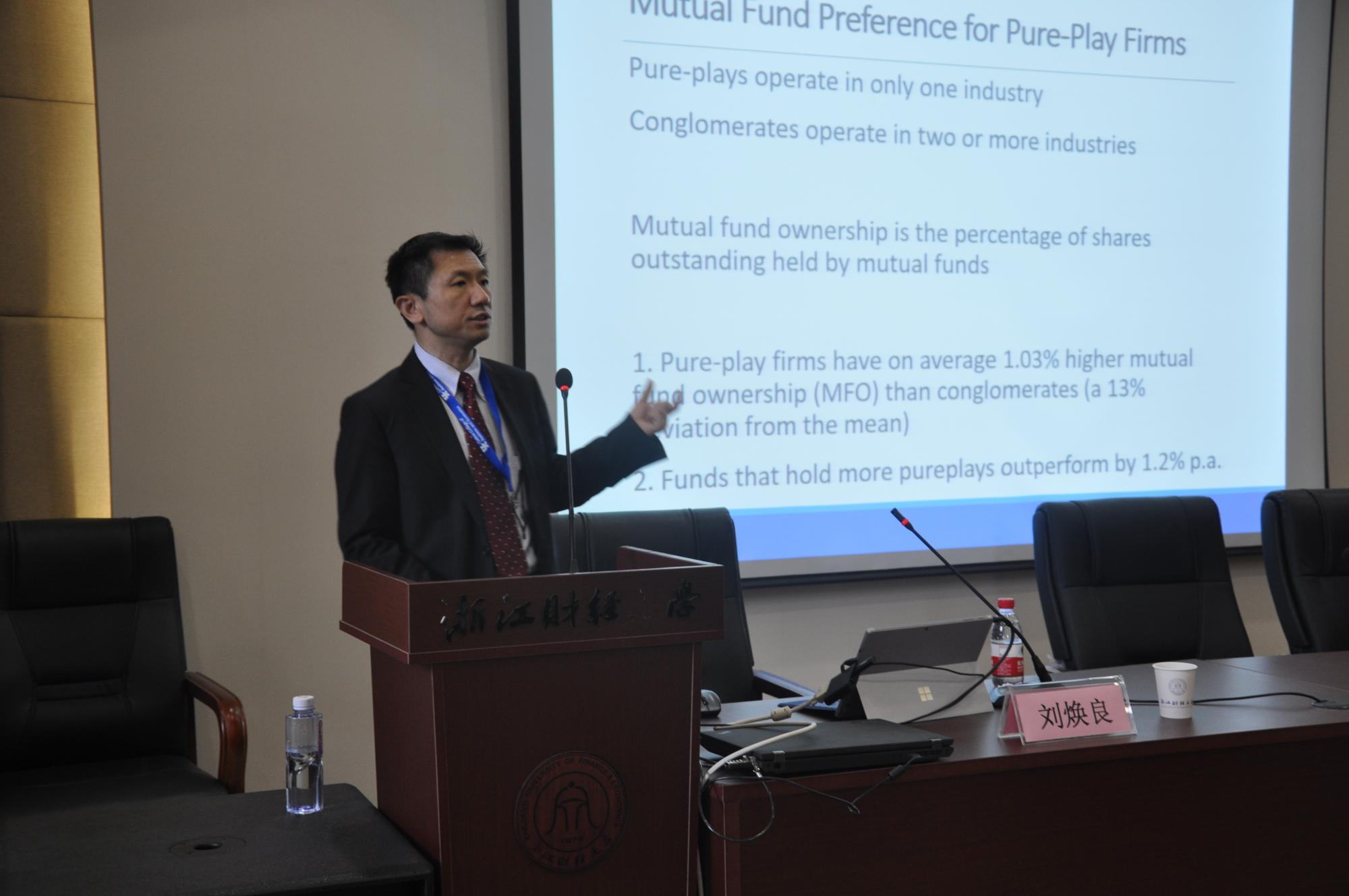 2楼报告厅作了题为 “Mutual Fund Preference for Pure-Play Firms”的学术讲座,水果派