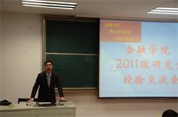 主持人对七位2014届毕业研究生做了简单介绍后,他们依次上台,讲述自己的学习与求职经历。现就职于交通银行的俞晓龙,向同学们讲述了他应聘时所遇到的各种问题。“没什么可怯场的”也是他面试后最大的感触。已被聘为南京银行高级客户经理的赵娇,更是根据自身经历,传授留杭经验,鼓励新生保持一颗积极向上的心。
