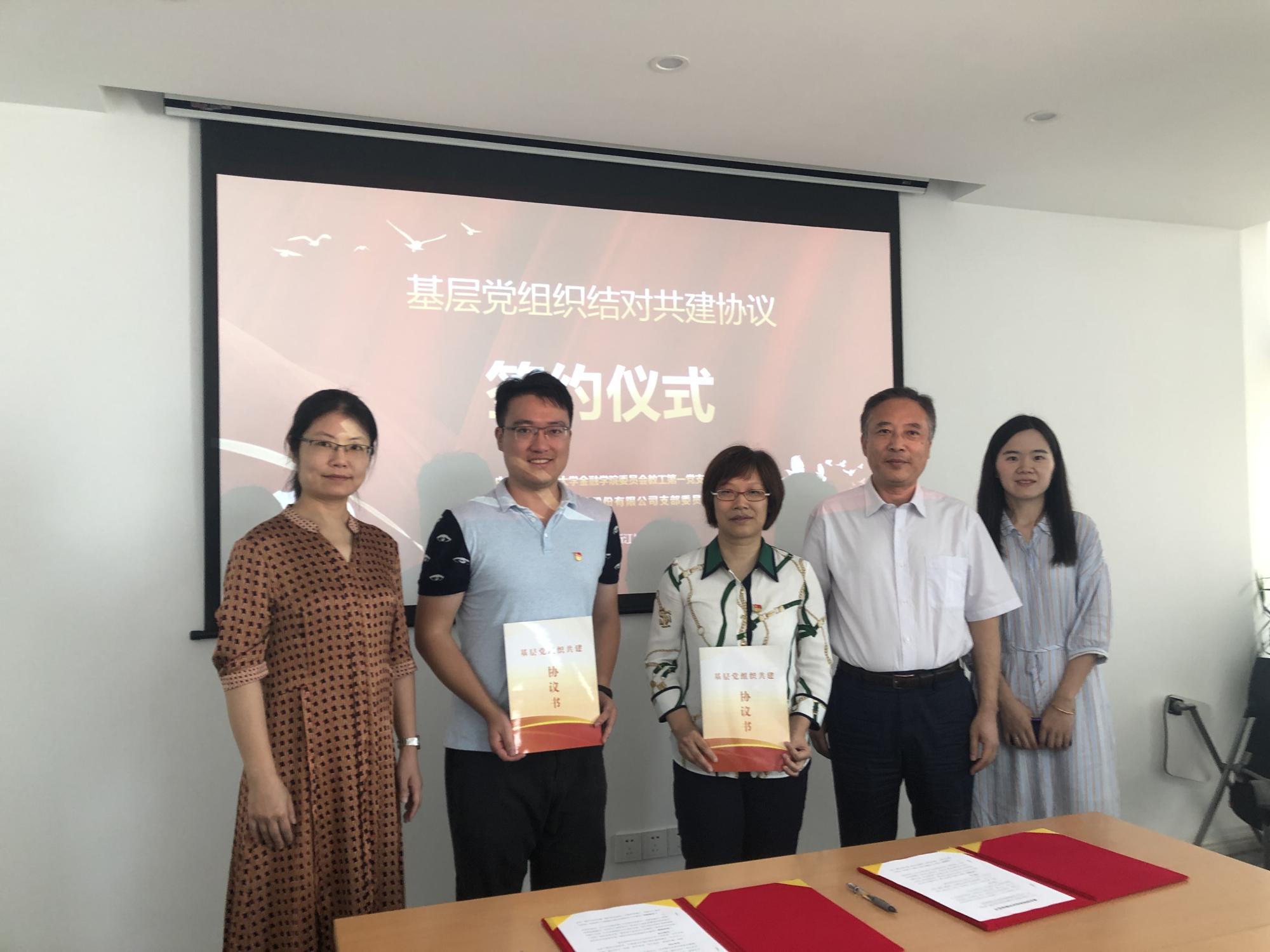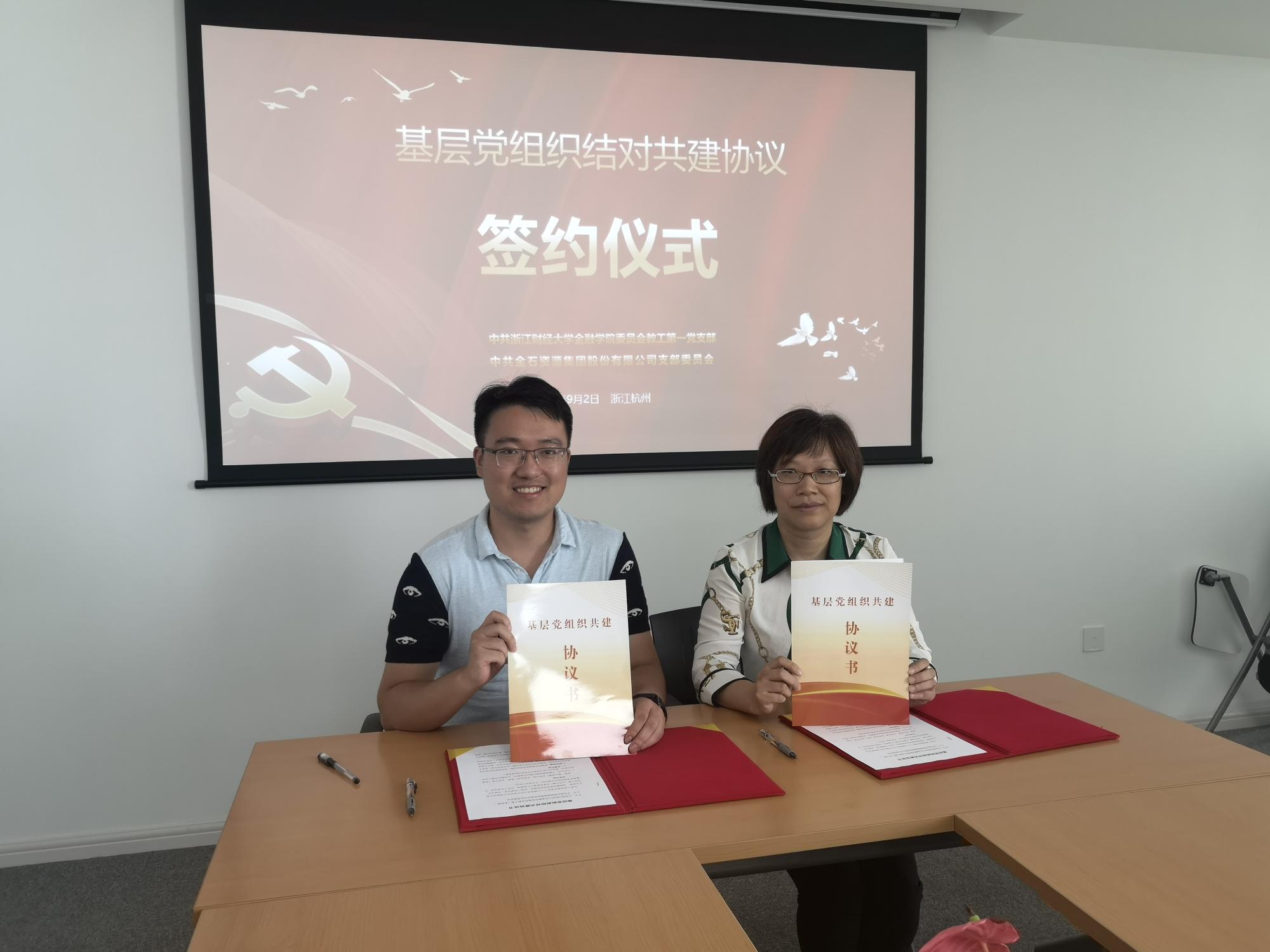 9月2日,水果派 教工第一党支部与金石资源集团股份有限公司党支部举行基层党组织结对共建签约仪式。金石资源集团股份有限公司副总裁、董事会秘书97届投资金融系校友戴水君,金石资源证券事务代表、党支部组织委员张钧惠,水果派 党委书记蔡国金,党委副书记谢敏,教工第一党支部书记金骋路,专职组织员翟丽媛出席签约仪式