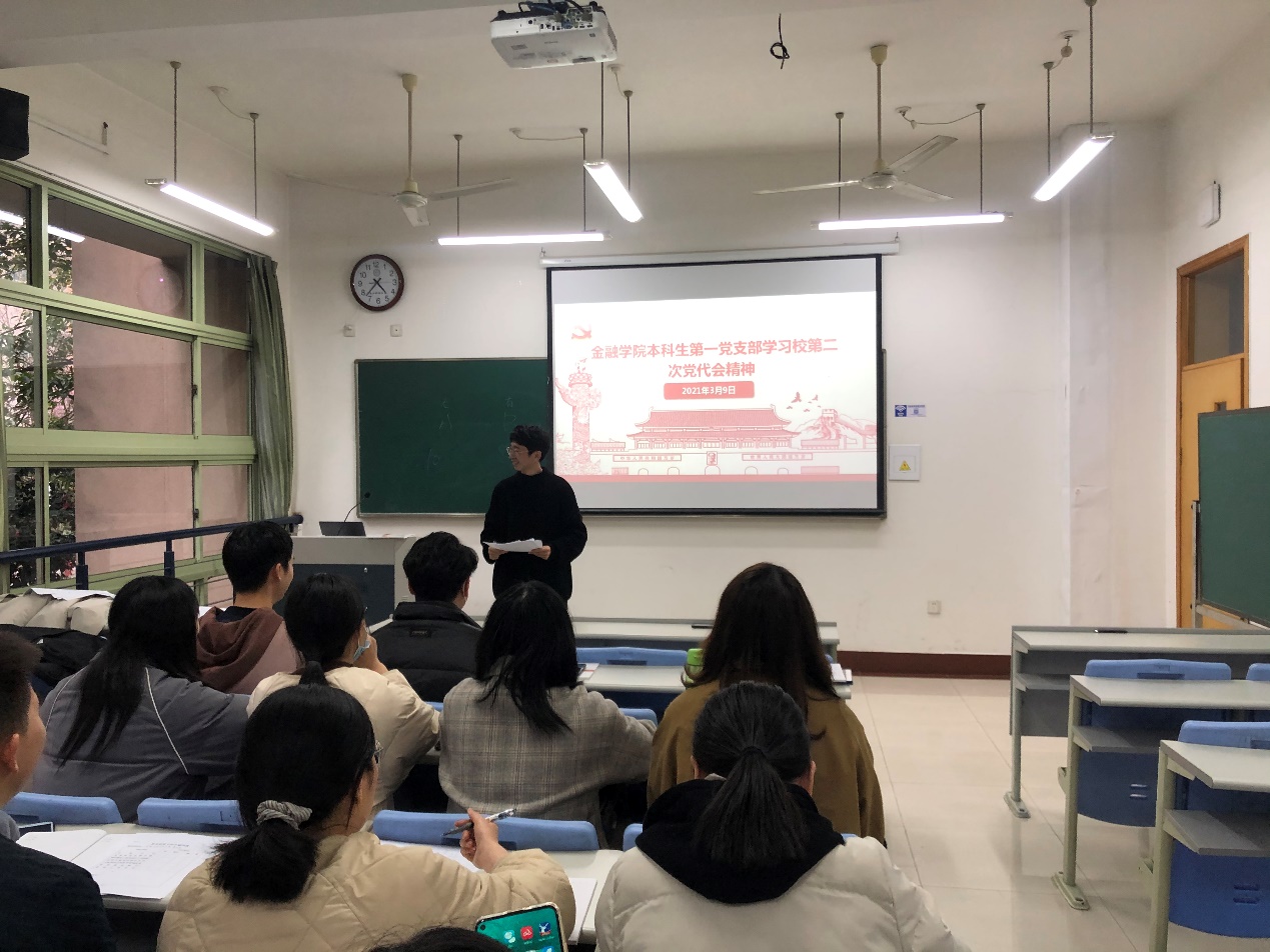 随后,支部党员年级代表依次上台发言,大家纷纷表示,本次党代会紧紧围绕立德树人根本任务,培根铸魂,日新又新,作为学生党员要不断增强自信自强的内生动力,提升个人金融学科的专业学习和实践能力,为建设特色鲜明的一流财经大学而努力奋斗。