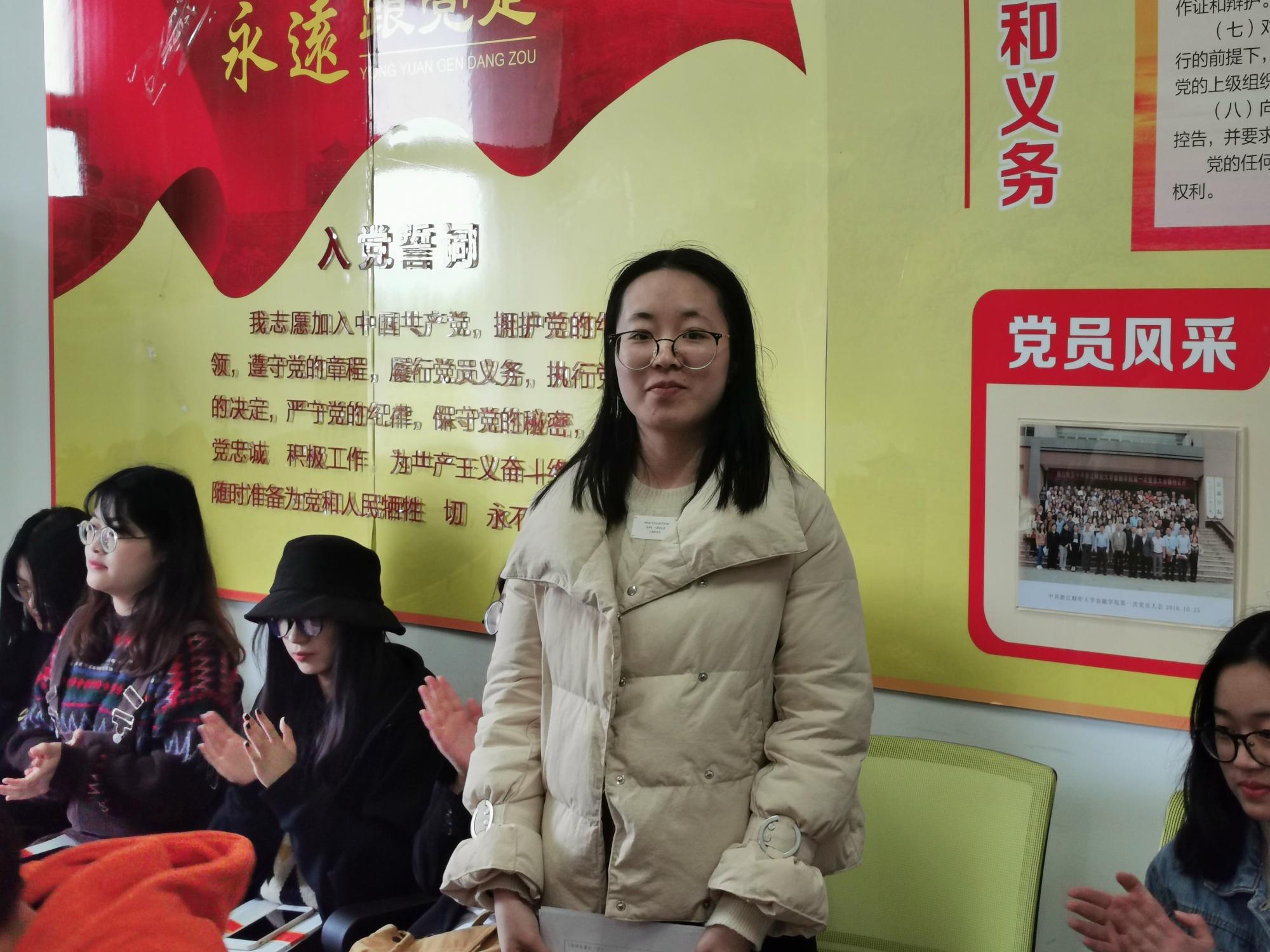 大会第一项,讨论关于接收李格等10名发展对象为预备党员的问题。支部委员会通过广泛征求支部内外群众意见、培养联系人意见、政治审查等环节,结合考察情况后确定了李格等10名同学为本次发展对象。随后,发展对象依次介绍个人情况,与会同志积极发表意见。经过参加本次支部党员大会有表决权的全体正式党员无记名投票表决,按照有关组织原则,支部大会决定同意接收李格等10名同志为中共预备党员。