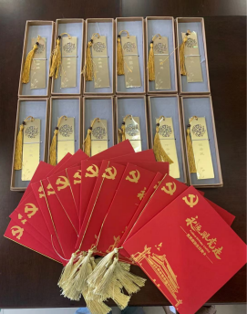 随后,我们举行了欢送毕业生党员仪式。非毕业生党员向毕业生党员送上自己亲手书写的卡片祝福,党支部书记陈信同志为每一位毕业生党员送上党支部专门为其定制的纪念品。