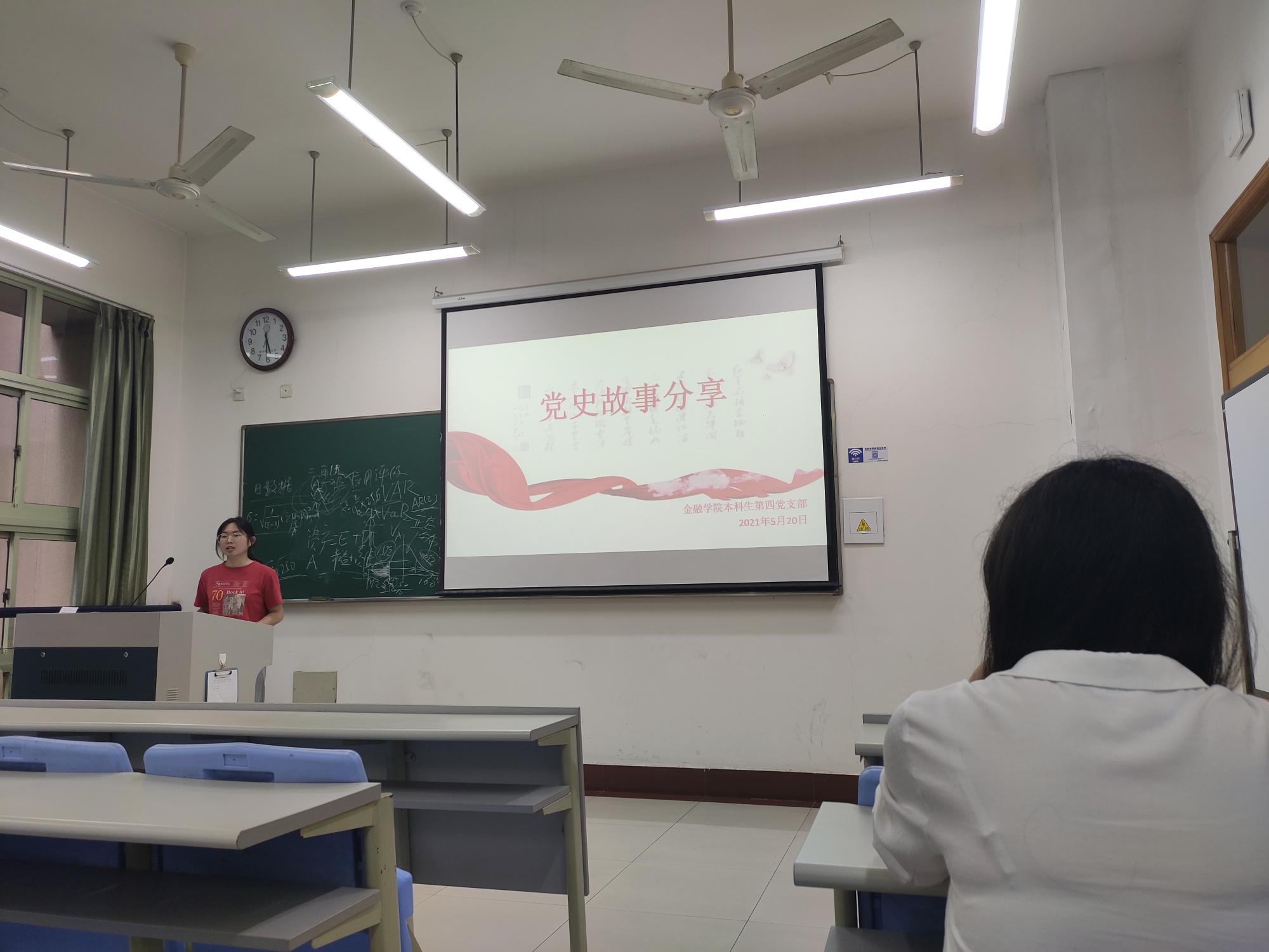 520日,支部党员郑盼盼、喻弘正、王洁、周伽怡四名党员为大家讲述党史故事。郑盼盼回顾了一二·九抗日救亡运动,与同学们共同领略了中华民族的英勇斗争精神。喻弘正为大家讲述了南昌起义,让同学们深刻感受到中国共产党独立领导革命战争、创建人民军队和武装夺取政权开端的伟大意义。王洁向同学们分享了井冈山的故事,带领大家触摸历史,重踏先辈足迹。周伽怡重点讲述了中国人民抗日战争的伟大胜利,呼吁同学们弘扬伟大的抗战精神。