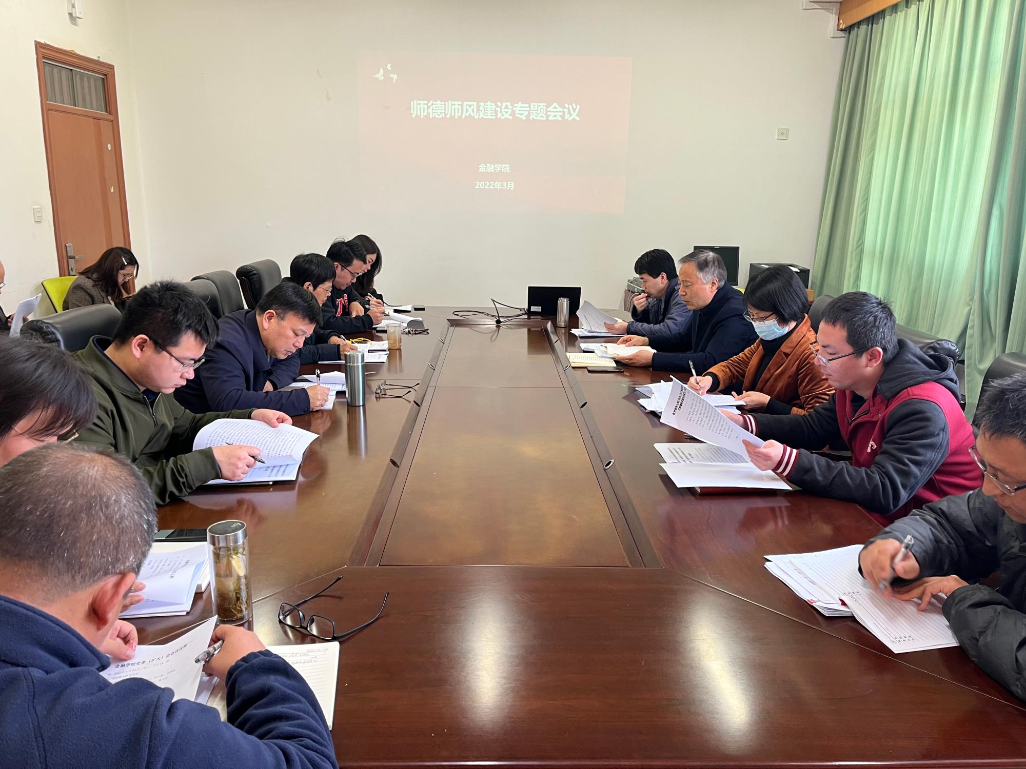 党委召开师德师风建设专题会议,学院党委委员、纪委委员、党支部书记、系主任参加会议。会议由学院党委书记蔡国金主持。