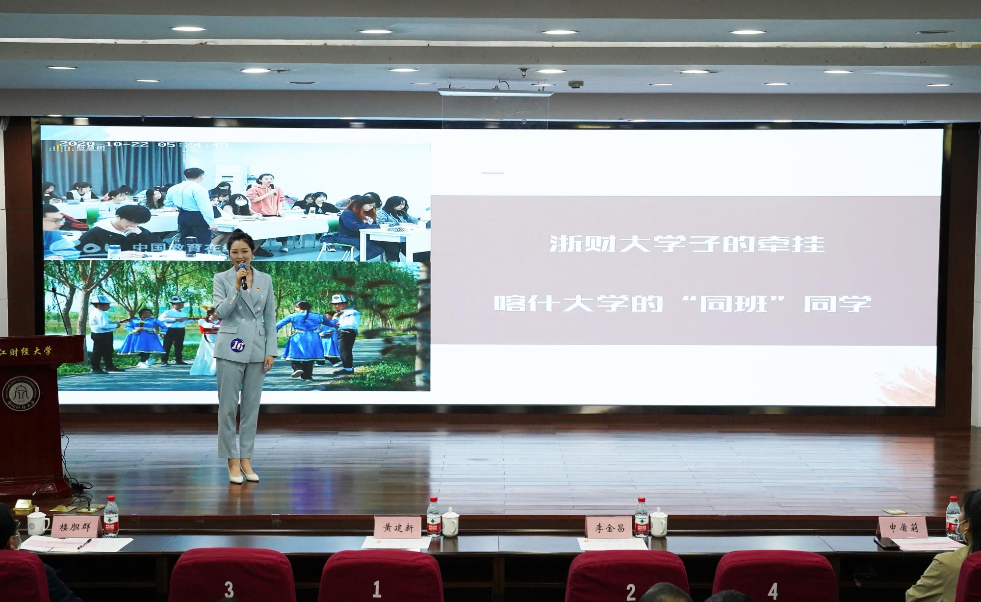 据悉,本次大赛共有21名选手参加,他们围绕“喜迎二十大 奋进新时代”主题,紧扣“幸福”“创新”“奋进”等关键词,结合浙江发展实际和自身经历,用6分钟讲述了一个个新时代的奋进故事。廖丁瑶老师的微党课以《牵手“远方”奋进,这才幸福》为题,从“慕课西部行计划”引入,描绘了浙财大牵手“远方”奋进的姿态,深情讲述了刘剑锋等老师舍家报国、献身大漠、支援新疆的感人故事,生动诠释了用浙江精神凝聚奋进新时代的强大力量!