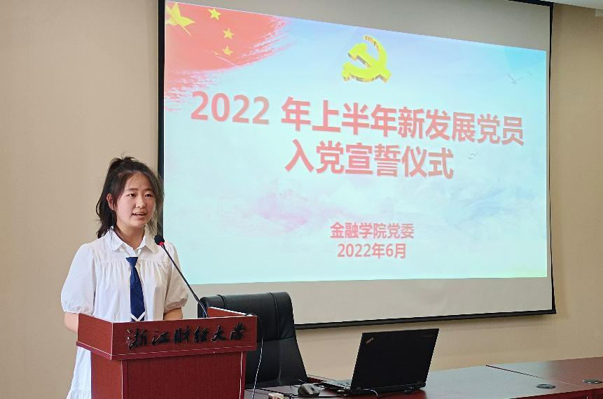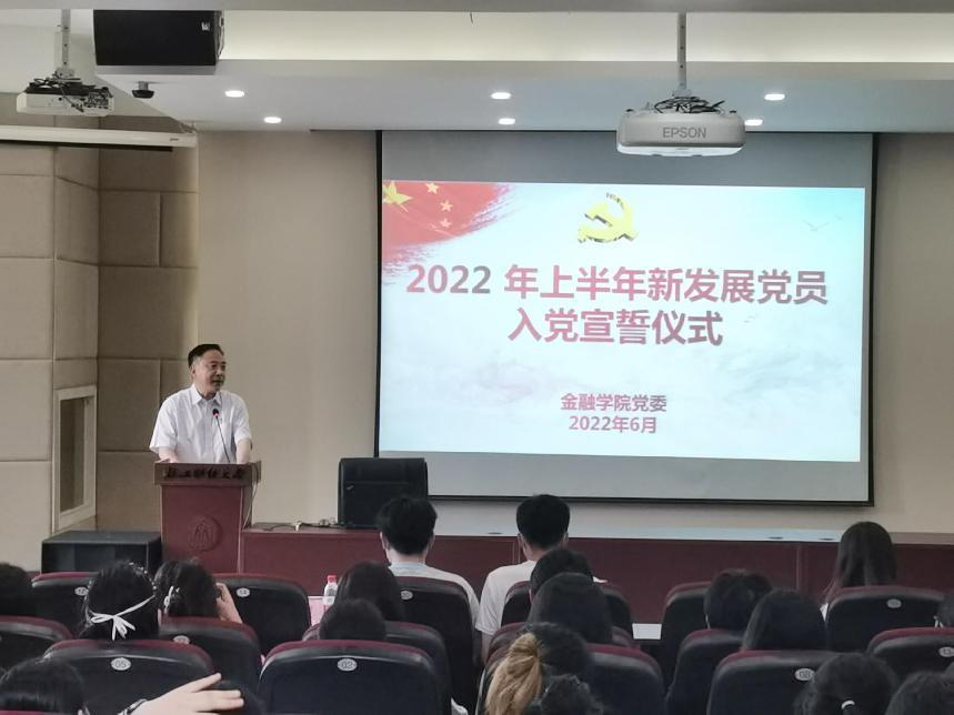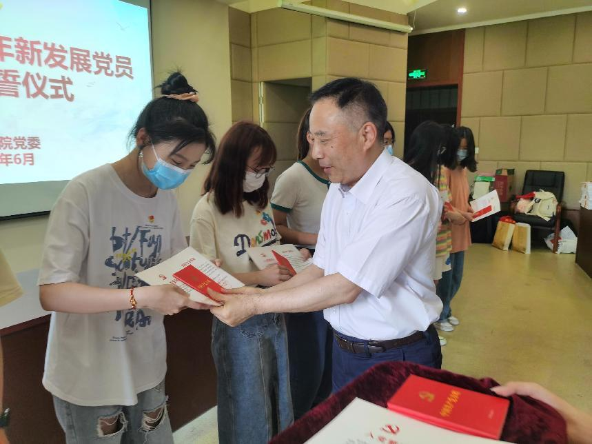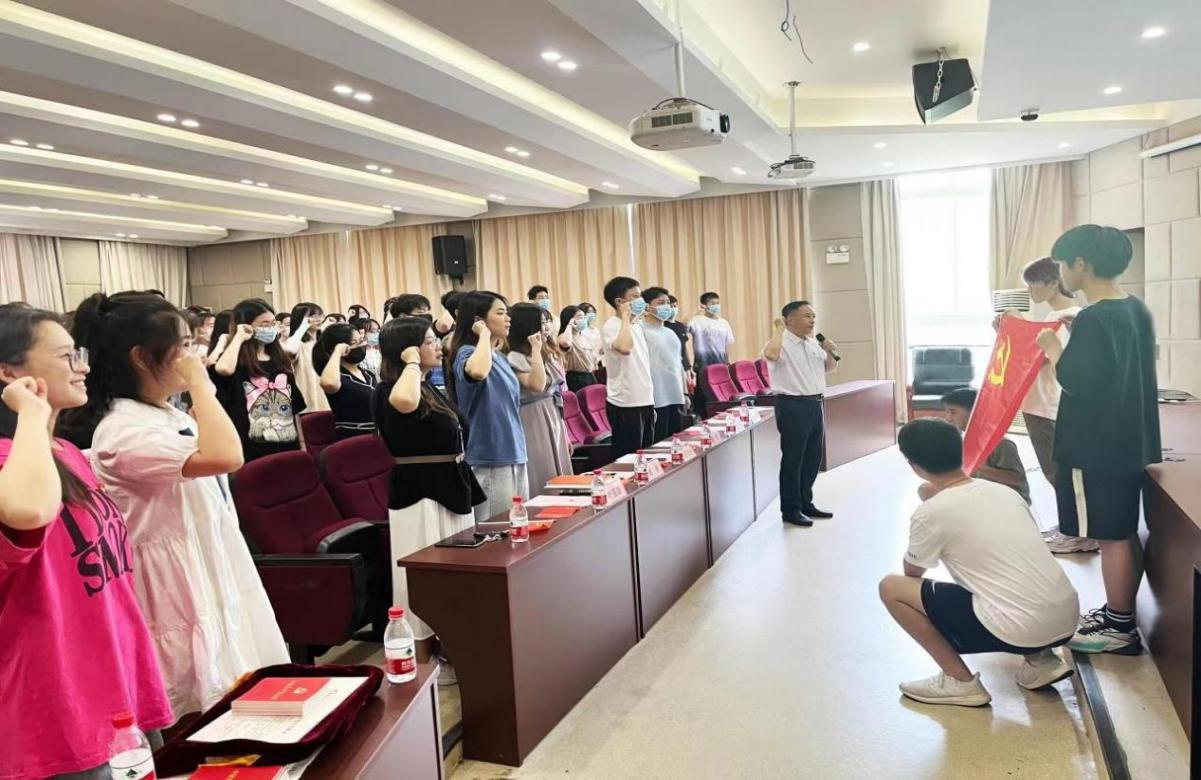 党委在学院楼202报告厅举行2022年上半年新发展党员入党宣誓仪式。学院党委书记蔡国金、各学生党支部书记、支部委员、老党员代表及全体新发展党员出席了本次仪式。仪式由专职组织员翟丽媛主持。