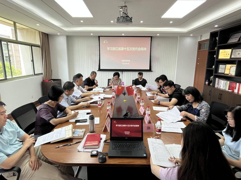 学院各党支部纷纷掀起学习贯彻省第十五次党代会精神学习热潮,第一时间通过“三会一课”、主题党日活动、心得分享、交流研讨等形式将党代会精神传达到了每一位党员,推动省第十五次党代会精神入脑入心。全体党员们一致表示,将把贯彻落实省第十五次党代会精神与迎接党的二十大胜利召开的主题主线结合起来,与贯彻落实学校学院“十四五”规划结合起来,全面贯彻党的教育方针,牢记嘱托,不辱使命,真抓实干,从省第十五次党代会精神中充分汲取智慧和力量,为奋力推进浙江“两个先行”贡献力量。