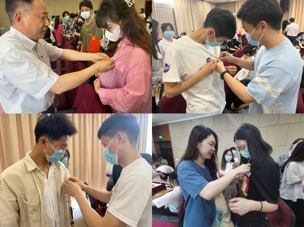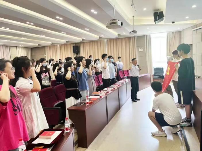 在学院党委举行的2022年上半年新党员入党宣誓仪式上,新发展党员们在学院党委书记蔡国金的带领下,面向党旗,右手握拳高举过肩,庄严宣誓。铮铮誓言不仅是他们对党的承诺,更是对自己的鞭策以及为党的事业奋斗终生的信念和决心。