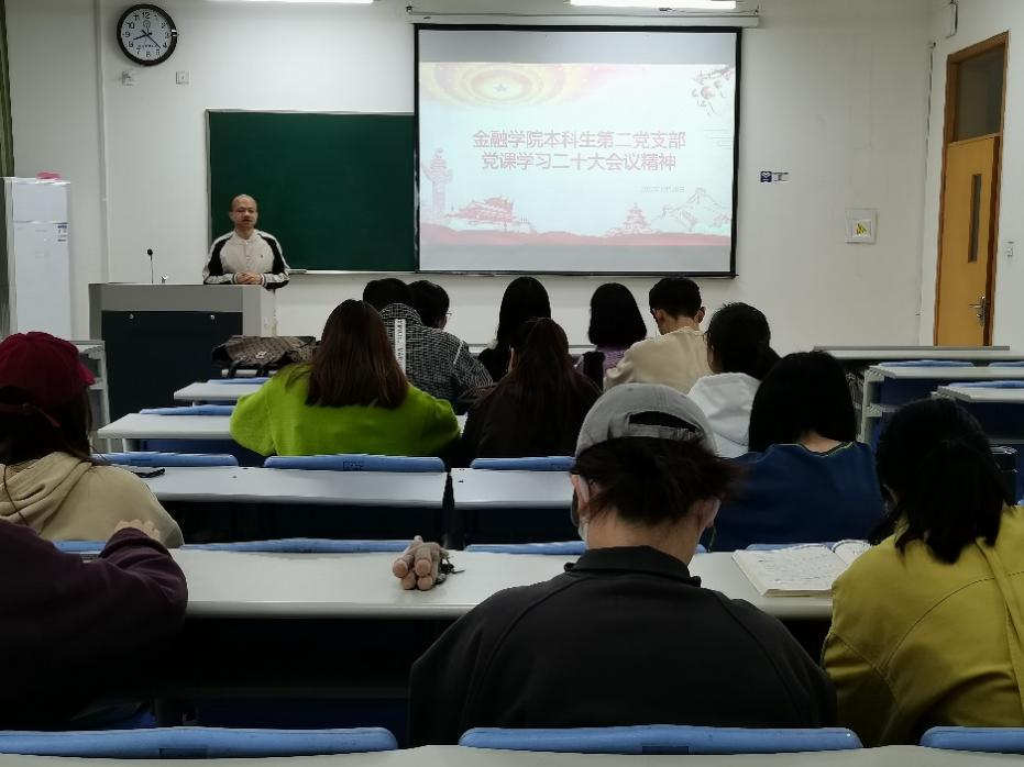本科生第二党支部在学院109教室举行学习党的二十大精神暨“敲反腐警钟,倡廉洁风尚”警示教育主题党日活动。学院副院长傅俊辉莅临出席,活动由支部书记李文生主持。