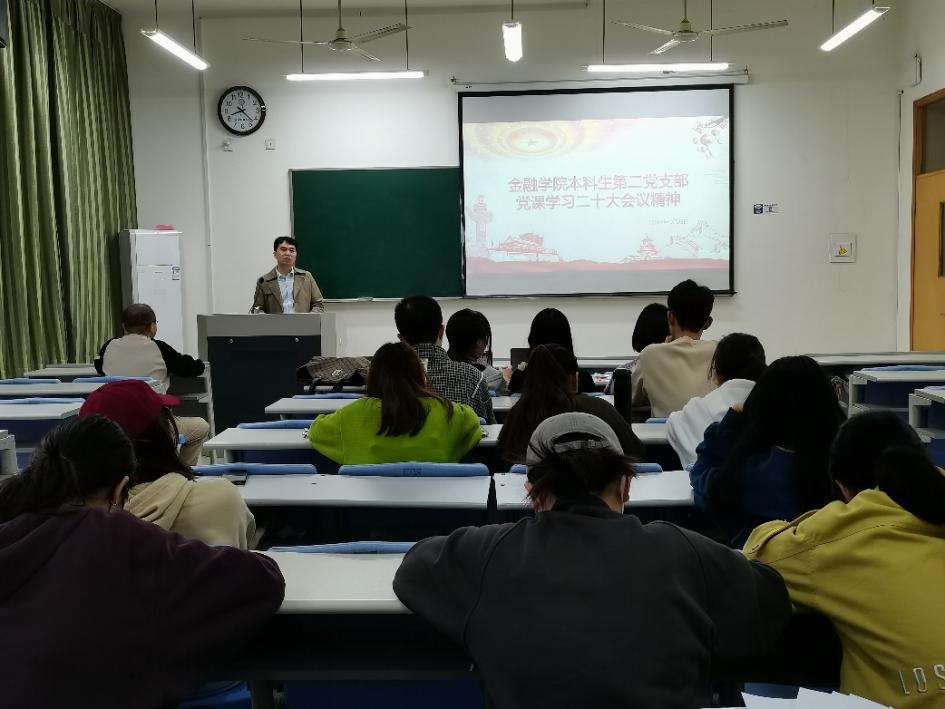 首先,支部书记李文生从三个部分带领支部全体党员学习了党的二十大报告内容。李文生对支部全体党员提出要求,要把学习好、宣传好、贯彻好党的二十大精神作为我们当前和今后的首要政治任务,以二十大精神为指引,在新时代新征程中奋勇争先,无愧时代和国家赋予青年大学生的历史使命。