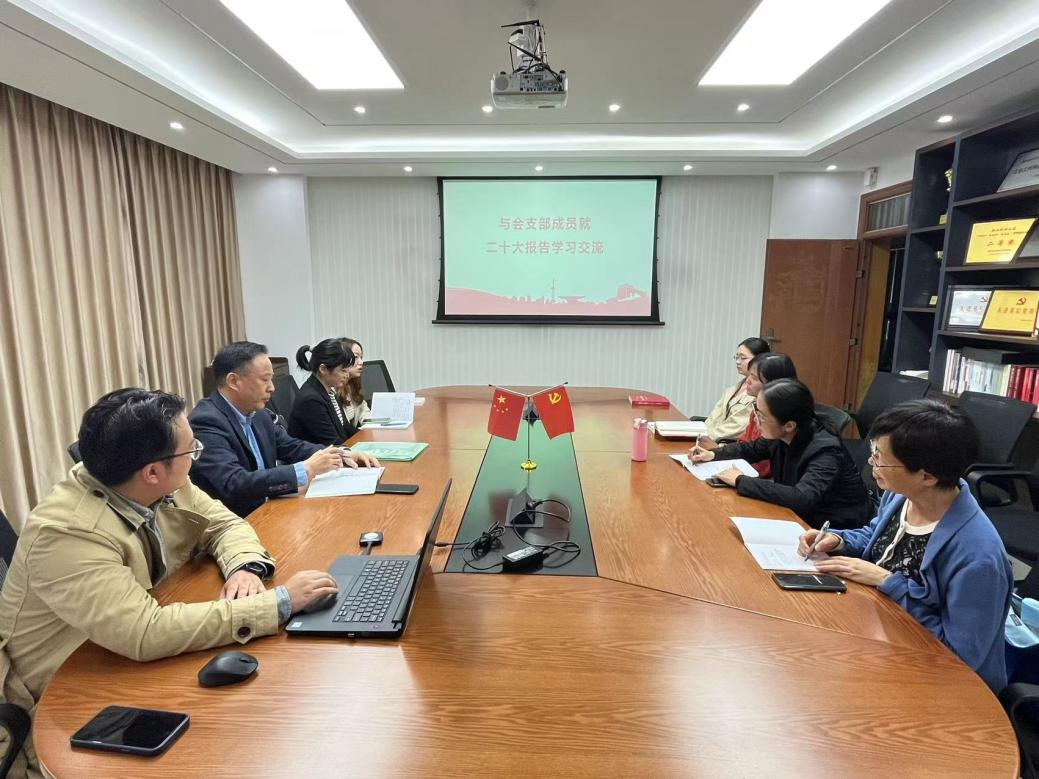 支部书记金骋路领学了党的二十大报告的主要内容。他强调,二十大报告系统总结了过去五年的工作和新时代十年的伟大变革,为未来5年乃至更长时期党和国家事业发展的目标任务和大政方针指明了方向。其中,金骋路着重讲到了一个数字:“105”——习近平总书记在二十大开幕会的报告中“人民”一词一共出现了105次,这充分体现了党和国家人民至上的理念。中国共产党根基在人民、血脉在人民,坚持以人民为中心的发展思想,体现了党的理想信念、性质宗旨、初心使命,也是对党的奋斗历程和实践经验的深刻总结。